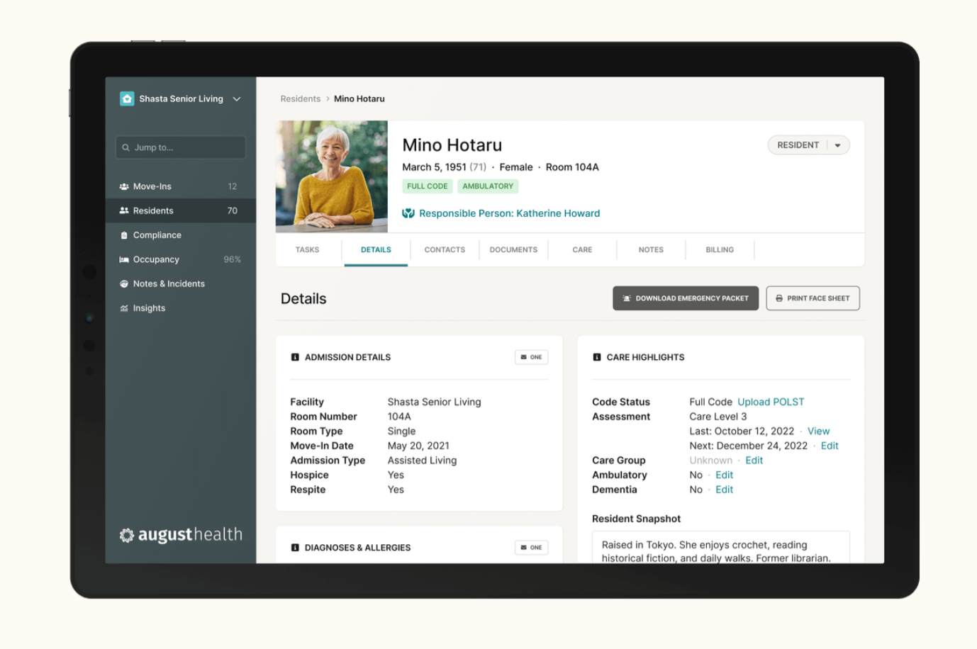 Since launching in 2020, August Health has been adopted by leading operators across the country, including Sonida Senior Living, 12 Oaks Senior Living, Priority Life Care, Bickford Senior Living, Koelsch Communities, and Westmont Living. Learn more at augusthealth.com.