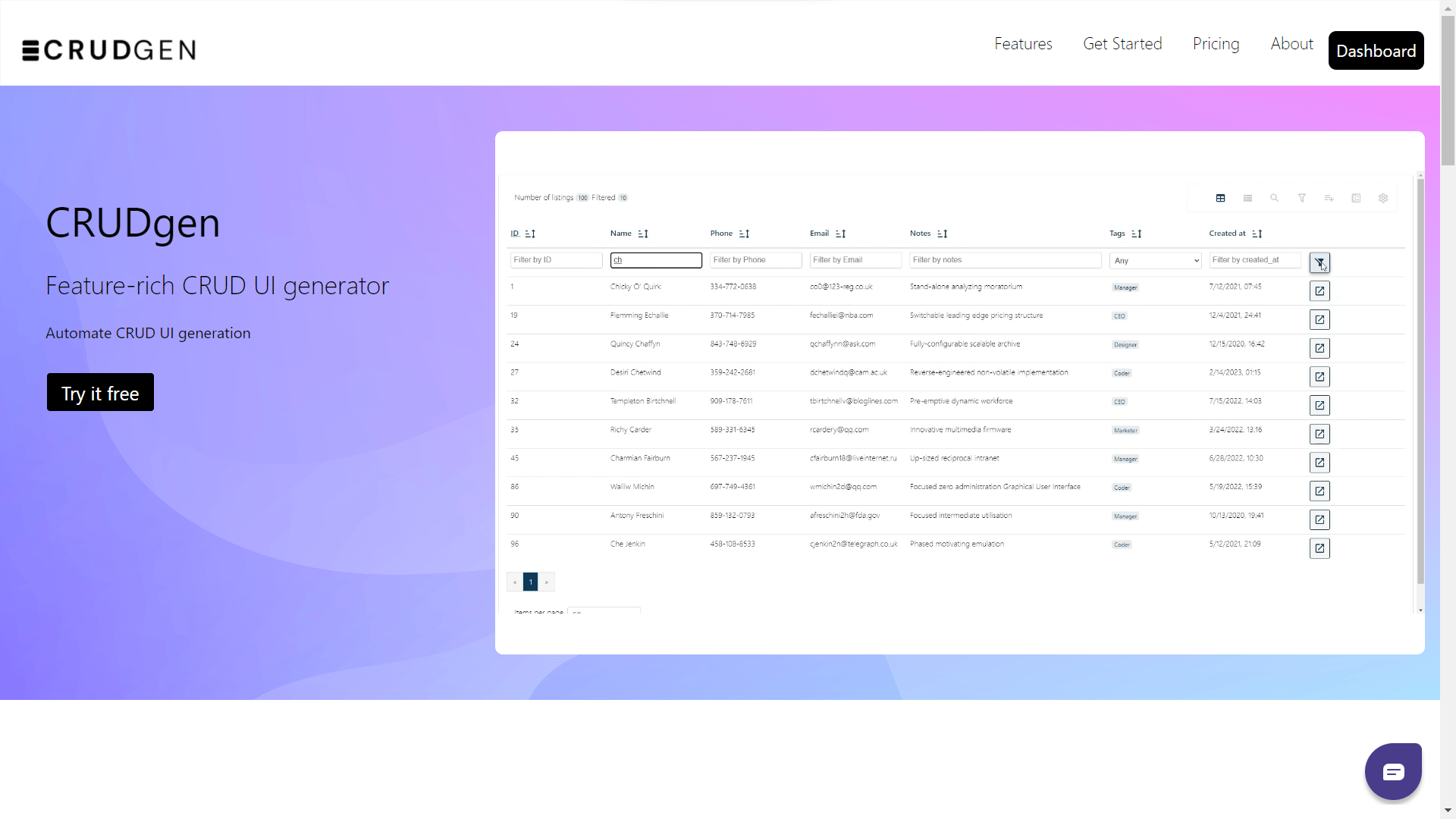 CRUDgen can quickly generate user interfaces in mere seconds by utilizing database tables as its foundation. This tool offers a contemporary and feature-rich UI that seamlessly integrates with various backend technologies.