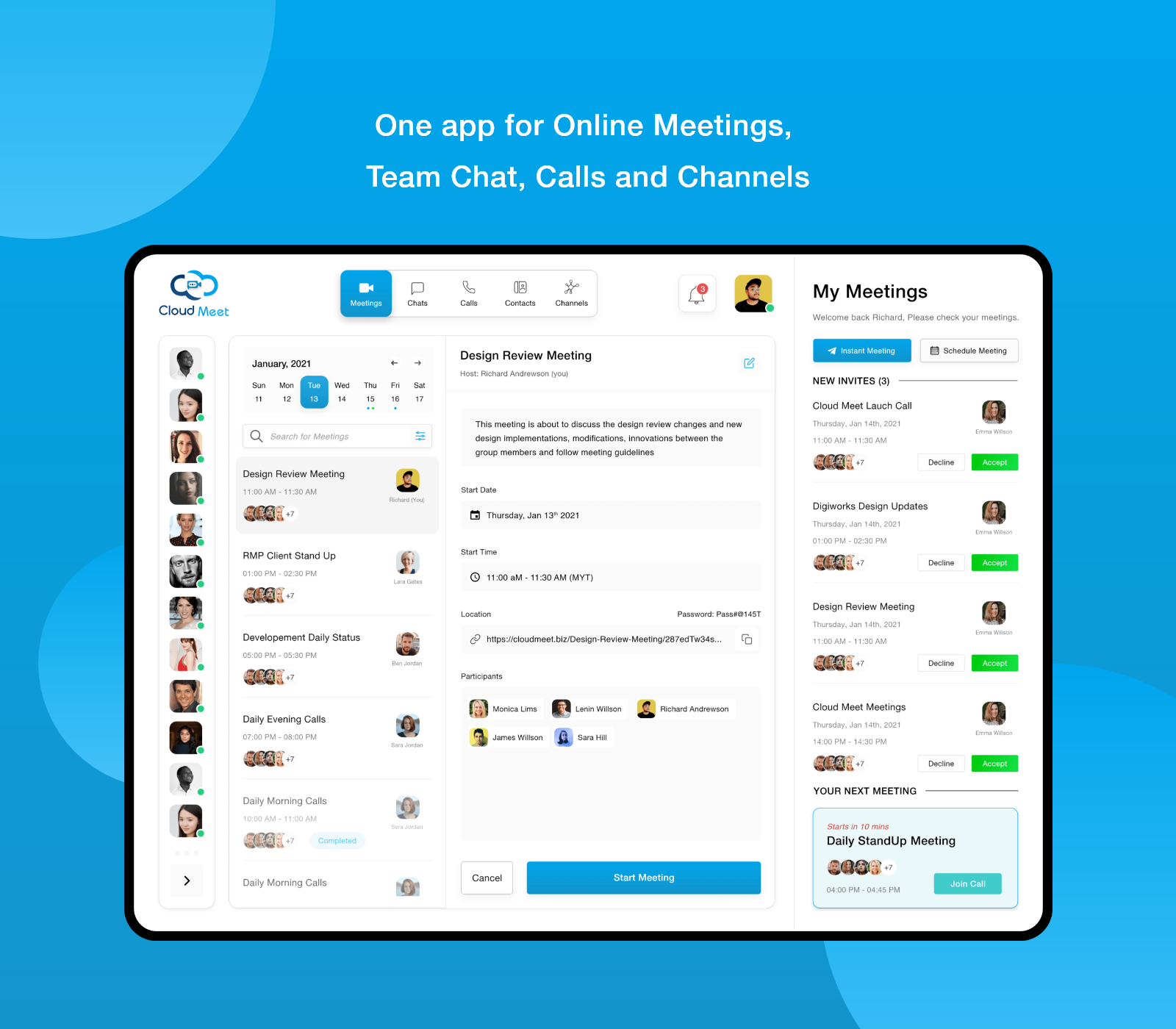 Businesses now have access to a self-hosted, encrypted solution for online meetings, team chat, audio/video calls, and various communication channels. This latest release includes several key features: first, users can easily join a meeting on their mobile devices by entering their meeting ID, password, and name; second, logging into CloudMeet is streamlined with personal credentials; third, individuals can create either an instant meeting or schedule a virtual meeting for a later time; fourth, users can manage their invitations by viewing, accepting, or rejecting them and can effortlessly join or initiate meetings; fifth, real-time push notifications facilitate immediate communication with colleagues through one-on-one or group chats; and lastly, users can customize their meeting settings for enhanced functionality.