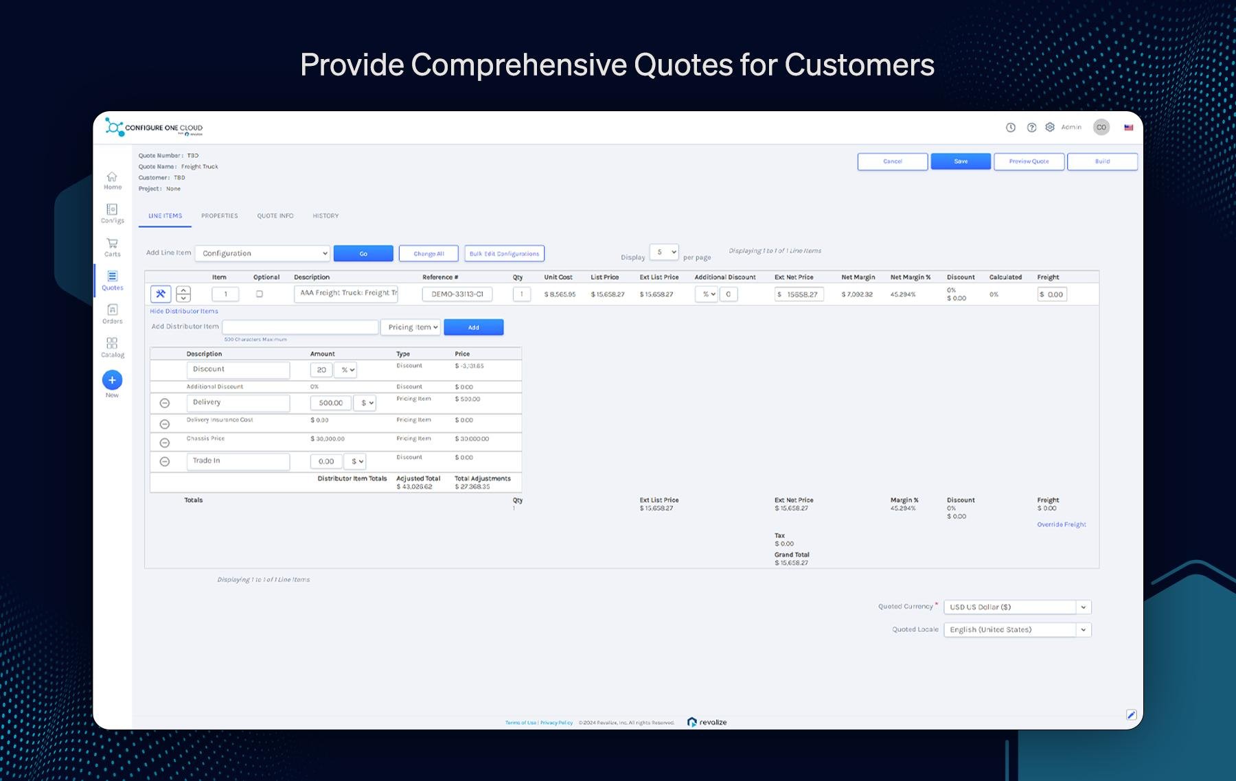 Achieve unparalleled accuracy and management with Configure One Cloud (CPQ). Designed specifically for the intricate demands of the manufacturing sector, our solution empowers companies to optimize their complete sales workflows, from quoting to cash collection. Drive growth and enhance operational efficiency on a large scale, with top-tier customization options and smooth integration with ERP and CRM systems, tailored to fit your business requirements.