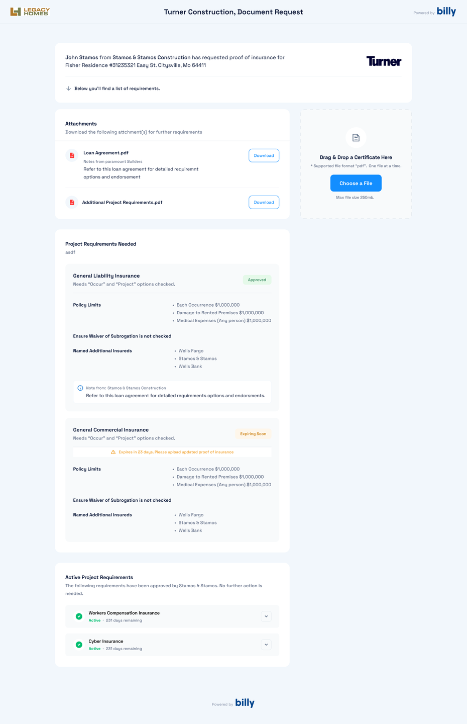 Billy serves as an all-in-one solution for effortlessly handling insurance and compliance requirements. It empowers users to pre-qualify subcontractors while efficiently managing key documents such as Certificates of Insurance (COIs), W9s, Business Licenses, Master Service Agreements (MSAs), Warranties, and Lien Waivers. By integrating smoothly with various platforms like Procore, Autodesk, Sage 300, and JD Edwards, Billy removes the hassle of duplicate data entry, which minimizes errors and saves valuable time. The platform enhances efficiency through automated reminders for documents nearing expiration, real-time compliance tracking, and proactive notifications, ensuring that businesses remain compliant with regulations. Additionally, Billy incorporates sophisticated features such as an insurance wallet and AI-enabled solutions that foster connections among contractors, brokers, and carriers, thereby promoting smooth workflows. Designed specifically for the construction sector, Billy not only simplifies intricate processes but also empowers teams to concentrate on securing projects while maintaining compliance with ease and precision. With its user-friendly interface and advanced functionalities, Billy stands out as a vital tool in the competitive landscape of construction management.