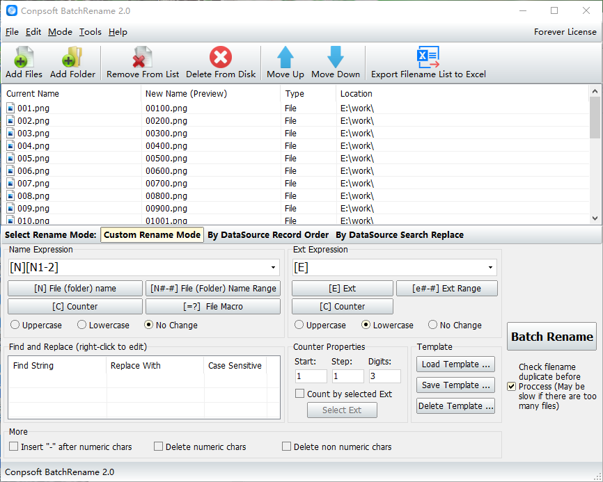 A professional tool for batch renaming files, it allows users to set expressions for both file names and extensions. Additionally, it offers features such as counters, macro definitions, find-and-replace string options, case conversion, and customizable settings for counter start points, step lengths, and bit counts. The tool also supports template functions, enhancing its versatility for various renaming tasks. Users can streamline their workflow with these advanced features, making file management more efficient.