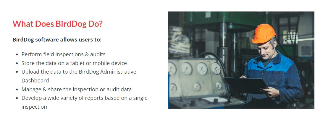 BirdDog, created by Asurio, Inc. in the United States, provides an adaptable, cloud-based inspection software that caters to various industries and geographical locations, optimizing the inspection workflow while adeptly handling, disseminating, and reporting inspection data. This robust platform merges administrative and field functionalities into a unified solution, guaranteeing a smooth experience for users on all three leading tablet operating systems. Celebrated for its outstanding digital inspection forms, BirdDog boasts a field technician interface that is both easy to navigate and user-friendly. The newest module adds "auto answer" features to facilitate tracking of fire extinguisher serial numbers and manufacturer barcodes, thereby streamlining the data collection procedure. In addition, BirdDog allows developers to effortlessly integrate its inspection engine into their applications, which aids in generating revenue more effectively and resolving issues faster. With countless customizable features and clear output formats, BirdDog distinguishes itself as a frontrunner in the inspection software market. Its cutting-edge functionalities not only bolster operational efficiency but also play a crucial role in enhancing overall service delivery, ensuring users can trust the reliability of their inspection processes. As businesses continue to seek innovative solutions, BirdDog remains committed to adapting and evolving to meet the changing needs of its clients.