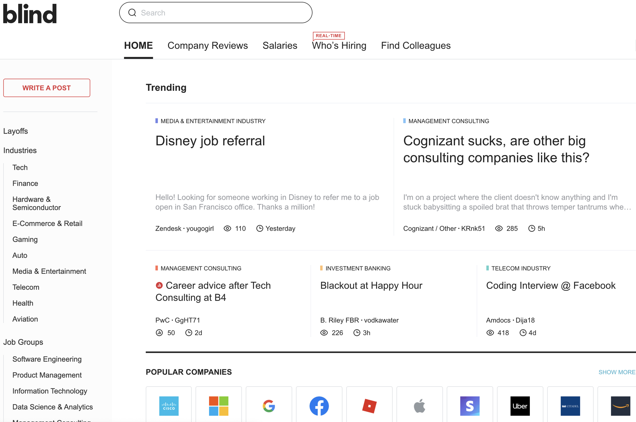 Blind operates as a trustworthy platform where verified professionals can participate in significant conversations about critical issues. Within this space, individuals have the opportunity to communicate anonymously in private channels tailored to their organizations, while also engaging freely with users from diverse industries. The platform has expanded to include a vibrant community of over 3.5 million professionals worldwide, who share valuable insights, provide honest feedback, improve workplace culture, and discover relevant career information. This environment nurtures a sense of collaboration and support, empowering individuals in their pursuit of professional advancement. Ultimately, Blind stands out as a crucial resource for those looking to connect and grow in their careers.