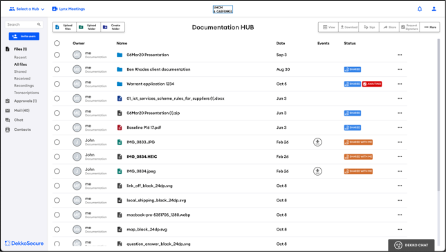 DekkoGovâ„¢ provides ultra-secure file sharing, collaboration, and eSignatures specifically designed for Government workflows, earning the trust of Government departments and their external partners worldwide. The appeal of Dekko lies in its robust security measures that ensure the utmost protection of sensitive governmental data.