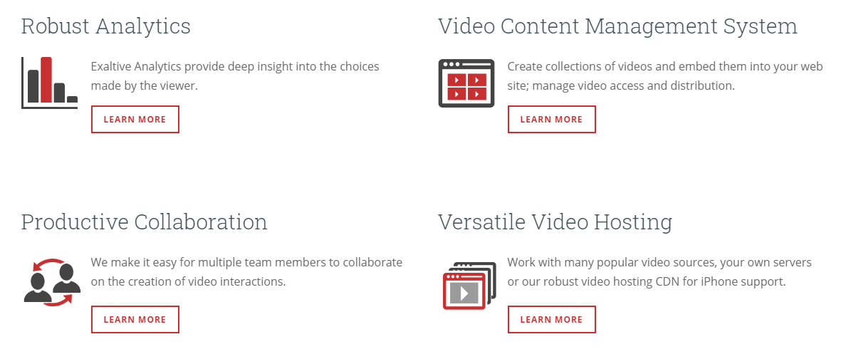 Exaltive is a cutting-edge Interactive Video Platform that allows viewers to make transactions directly within video content. By personalizing videos with each viewer’s name and pertinent information based on their interests and needs, the platform creates a unique experience. Additionally, it supports the gathering of user inputs, including registration details, setup preferences, and customer feedback, through interactive wizards. Featuring a lightweight HTML5 player and optimized encoding for bandwidth, Exaltive guarantees an outstanding viewing experience for all users. Crucially, your data is securely stored on your own server, ensuring its safety and confidentiality. As a pioneering technology, Exaltive enables businesses to build stronger relationships with prospects, customers, and employees by harnessing the power of video to meet the functional demands of websites and applications seamlessly. The Exaltive Platform comprises three distinct tools that integrate personalized or data-driven content from web applications into captivating online videos, while also streamlining the collection of user inputs and facilitating transactions. This all-encompassing strategy not only boosts user engagement but also simplifies interactions within digital video environments, making it an invaluable asset for modern businesses. Ultimately, Exaltive redefines how companies can connect with their audiences in a more dynamic and interactive manner.