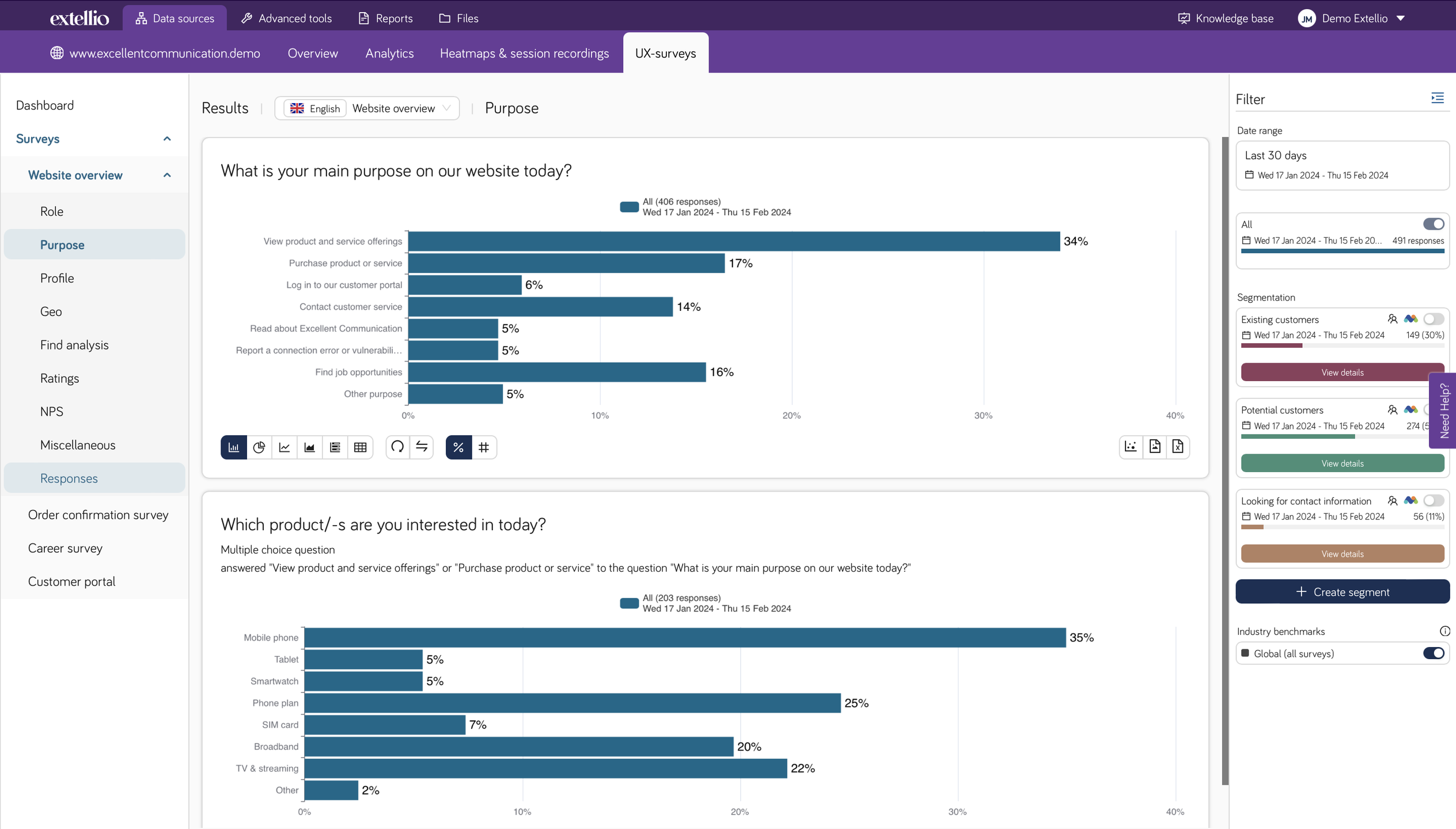 It delivers GDPR-compliant analytics alongside intelligent surveys, heatmaps, and session recordings, all integrated within a sophisticated analytical framework. Users can merge various data streams to generate highly targeted segments or funnels that draw from both survey responses and analytics metrics.
