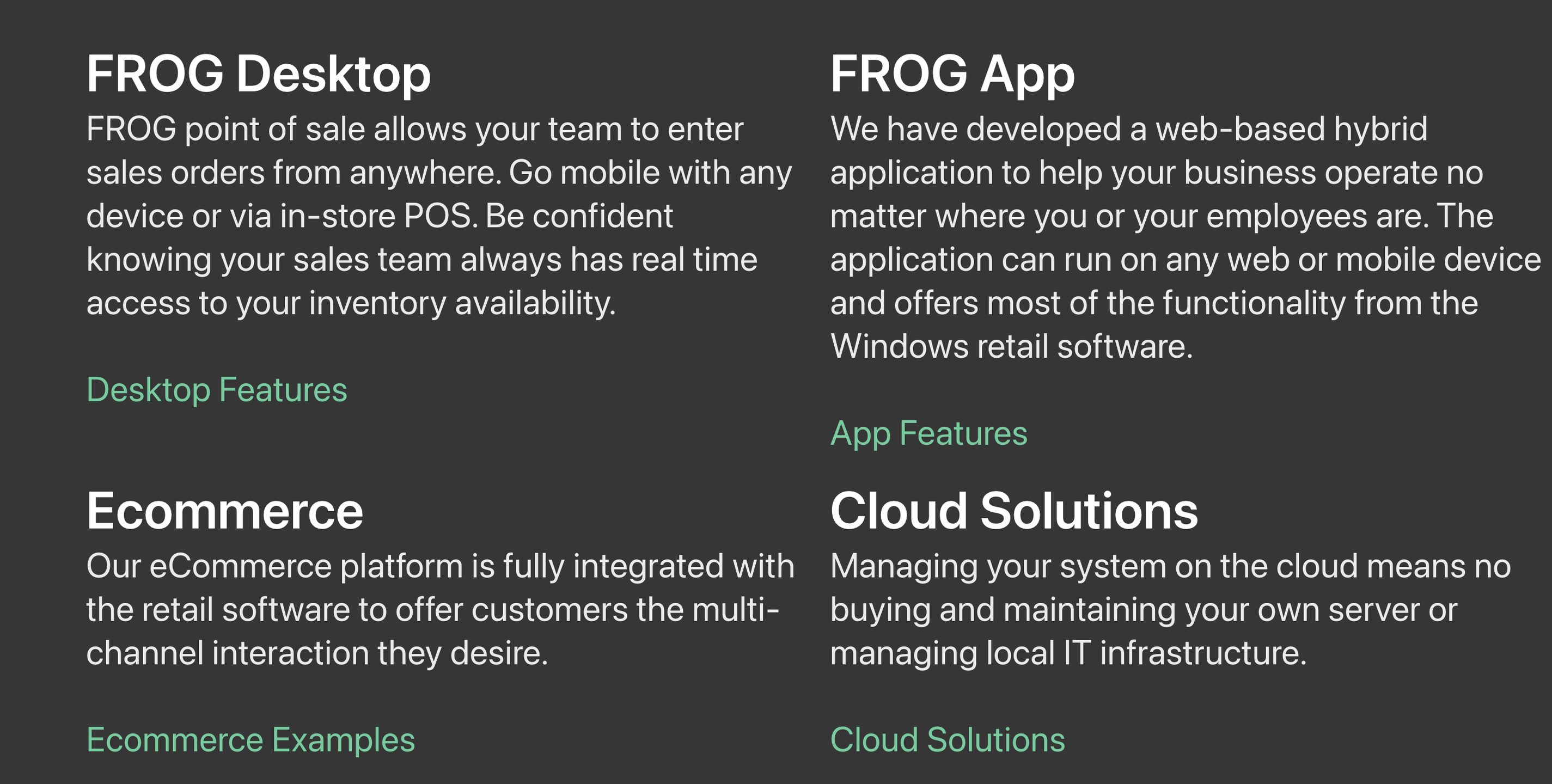 Our comprehensive software solution integrates point of sale, customer relationship management, inventory management, service administration, eCommerce integration, and accounting tasks like general ledger oversight and financial reporting into one seamless platform. With the FROG point of sale system, your sales team can take orders from virtually any location using any device or the in-store POS setup. Your sales staff will benefit from the advantage of immediate access to real-time inventory data, providing you with peace of mind. We have developed a flexible web-based hybrid application that allows your business to operate smoothly, no matter where you or your employees are situated. This application works with all web and mobile devices while preserving most of the features available in the traditional Windows retail software. Furthermore, our eCommerce platform is completely integrated with the retail software, ensuring that customers receive the multi-channel interaction they crave. This all-encompassing strategy not only boosts operational efficiency but also significantly enriches the overall customer experience, ultimately driving greater satisfaction and loyalty. By consolidating these functions, businesses can adapt swiftly to changing market demands and enhance their competitive edge.