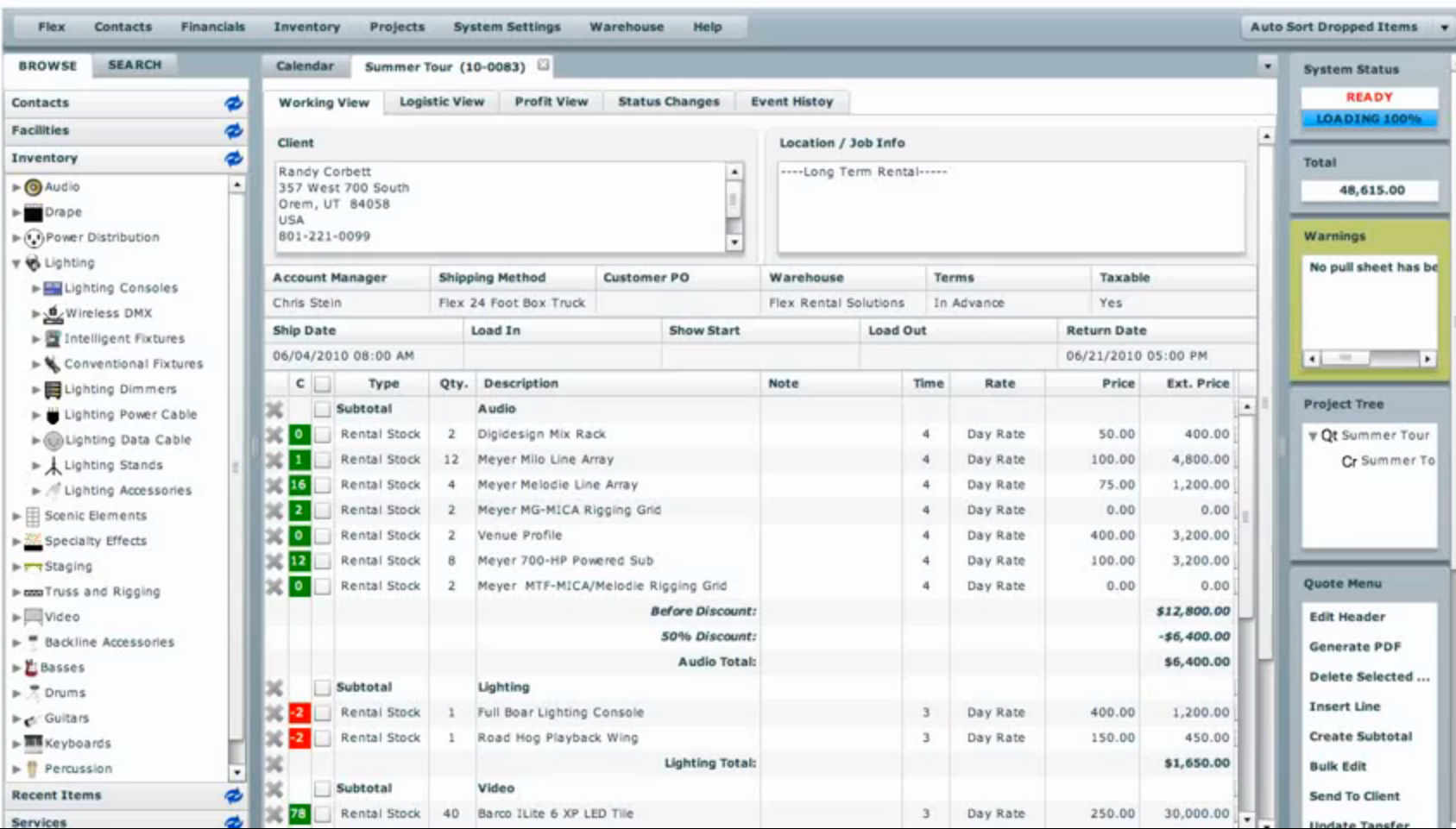 Flex Rental Management Software serves as a comprehensive web-based solution tailored for managing rentals in live events. This adaptable and customizable platform boasts a diverse array of features, such as client and financial management, alongside barcoding capabilities. It effectively simulates the needs of actual warehouses and inventory systems. Additionally, Flex supports virtual racks, item kits, and road cases while incorporating maintenance tracking and financial oversight. The system also facilitates labor management, personnel tracking, label printing, and event scheduling, all secured with SSL encryption and mobile integration to enhance accessibility and convenience for users. Its versatility makes it an essential tool for anyone involved in the live event rental industry.