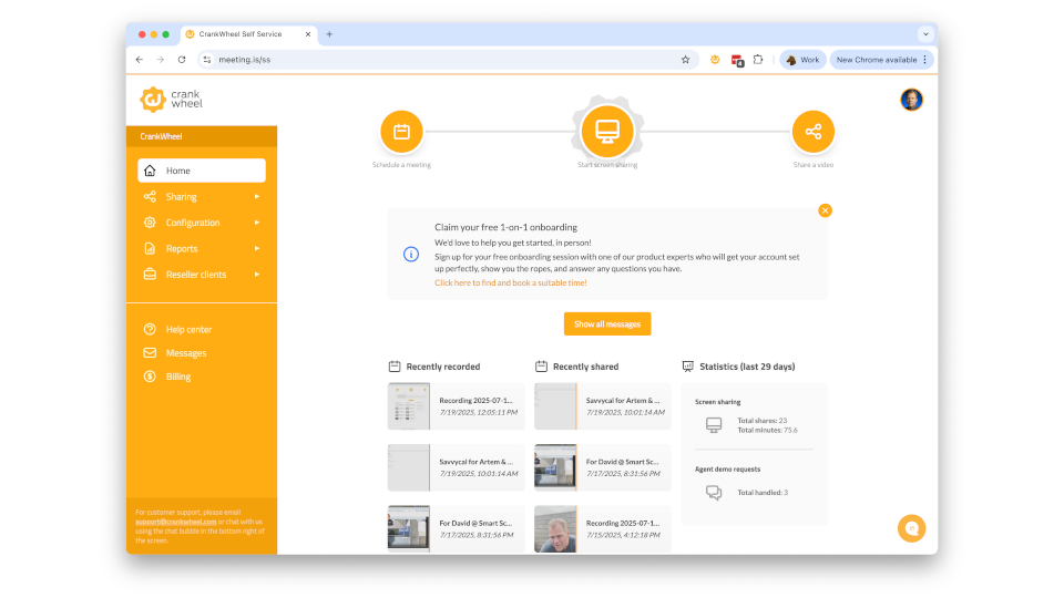CrankWheel offers the ability to share your screen during a call, making it simple to create captivating presentations. By sending a link through email or SMS, viewers can access the presentation in any browser on any device. Designed with user-friendliness in mind, CrankWheel is an excellent tool for connecting with customers and facilitating business transactions. The platform is particularly beneficial for professionals such as insurance agents, mortgage advisors, solar consultants, educators, and customer support representatives.