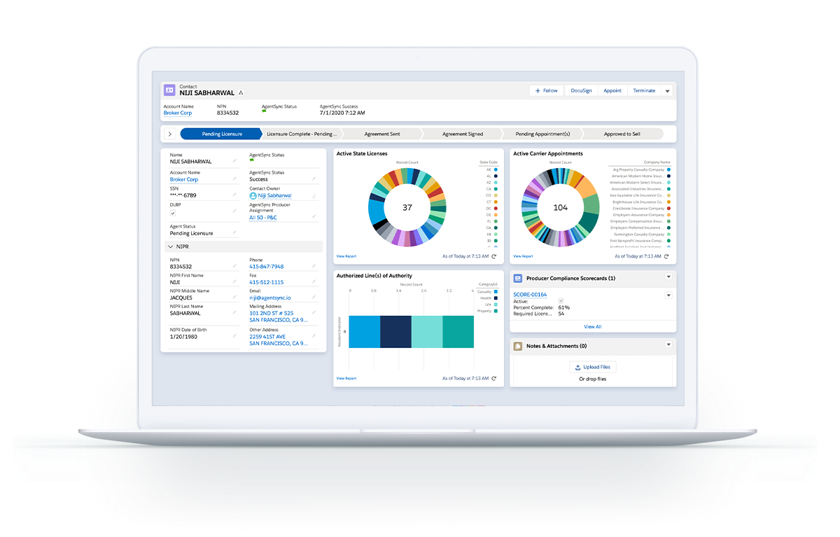 AgentSync develops contemporary insurance infrastructure aimed at simplifying complexities and enhancing efficiencies in managing producers and ensuring compliance. By refining your processes for broker onboarding, contracting, licensing, appointing, and compliance, AgentSync’s user-focused design, integrated APIs, automation features, and exceptional customer support help you expand your business, deliver a remarkable experience to producers, and avoid regulatory infractions.