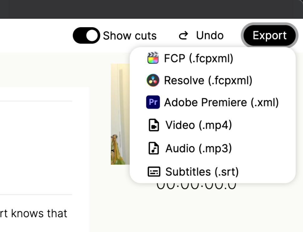 Select one or more video files, and we will take care of the AI transcription for you by removing any unwanted parts. Once that’s done, you’ll have the opportunity to review the revised version of your video and make further modifications, whether that involves cutting text or trimming segments from the timeline. If you're working with Premiere, Final Cut Pro, or DaVinci Resolve, you can conveniently export an XML file from Gling and load it into your timeline. Not using one of those editing programs? No worries; you can simply export your video from Gling in mp4 format, allowing you to import it into any video editing application you prefer. This versatility guarantees a smooth workflow with your chosen tools while also improving the overall quality of your project. This way, you can ensure that the final product meets your specific standards and expectations.