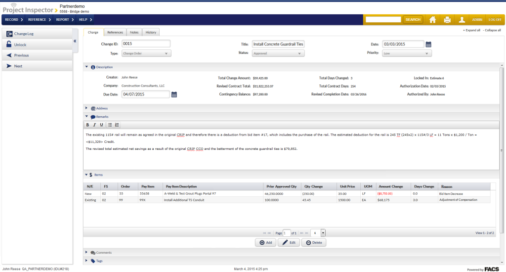 Field Automated Communication Systems (FACS) is a software solution powered by the cloud that focuses on enhancing construction management for field personnel, contractors, project owners, and managers. This platform effectively simplifies the administration of business operations and everyday responsibilities for its users. Its array of features includes schedule tracking, on-the-go reporting from the field, contract oversight, document management, and financial monitoring. Furthermore, FACS offers a project inspector tool that enables users to track the progress of ongoing tasks, record inspection results, and assess resource allocation with precision. By facilitating better communication and collaboration among all stakeholders, FACS significantly improves the overall efficiency of construction projects. As a result, teams can work more cohesively, leading to timely project completions and enhanced productivity.