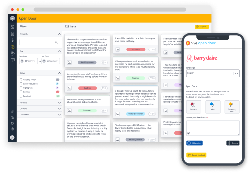 Our user-friendly, cloud-based platform boasts four key features: Hive Surveying, which offers customizable question sets; Hive Open Door, designed for continuous feedback; Hive Messenger, facilitating interactive dialogues; and Hive Fives, aimed at fostering peer recognition, along with Hive Actions that transform employee insights into meaningful change by prioritizing critical initiatives. Moreover, to truly effect change, we combine innovative technology with human expertise, as our People Scientists are dedicated to assisting HR departments and managers in utilizing employee feedback to reveal the underlying narrative behind the data, ensuring that every voice is heard and valued.