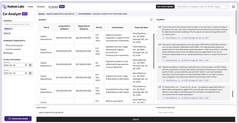 Hudson Labs serves as an advanced digital investment research platform that integrates AI-augmented fundamental research tools alongside meticulous forensic analysis and the pioneering Hudson Labs Co-Analyst feature. This platform offers automated overviews of company histories, earnings calls, and key financial metrics, enabling users to reclaim between four to ten hours of their weekly schedules. Its forensic risk assessment features leverage AI to methodically evaluate qualitative risk factors such as related party transactions, governance issues, and management integrity concerns, ensuring comprehensive analysis. The Hudson Labs Co-Analyst further enhances the platform's reliability by creating structured comparisons from earnings calls, scrutinizing peer comments, and accurately extracting guidance. The trust placed in this platform by asset managers overseeing assets worth more than $600 billion highlights its capacity to provide dependable and consistent insights grounded in factual information. By emphasizing precision while avoiding unnecessary embellishments, Hudson Labs not only supports user confidence but also fosters an environment where informed investment decisions can thrive. This commitment to clarity and reliability positions Hudson Labs as a critical tool for today’s investment professionals looking to navigate complex financial landscapes.