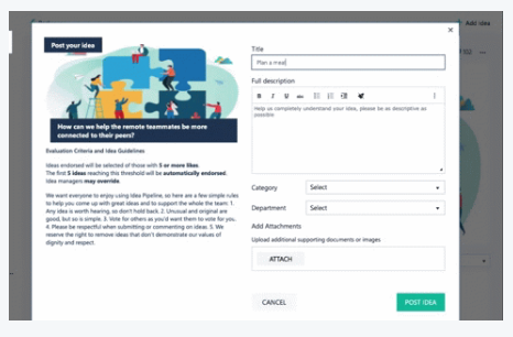 Idea Pipeline is an innovative online tool designed to enable employees to work together in submitting and generating creative ideas. By setting up a clear challenge, companies can guide their workforce to focus on solving a particular issue. These challenges foster prompt participation and targeted idea sharing, ensuring transparency throughout the process. Participants have the ability to see which ideas garner the most support from their peers and which ones do not resonate as much. Through Idea Pipeline, the burden of innovation is evenly distributed, allowing the best concepts to emerge and gain traction. Concepts that receive significant endorsements move forward for further development by designated stakeholders. Furthermore, Idea Pipeline includes features for monitoring engagement levels, along with detailed summary reports and visualizations of data. Users can engage by liking and commenting on ideas, which promotes constructive feedback and lively discussions. Consequently, the most promising ideas surface from the collaborative efforts of employees, enhancing their path toward realization and execution. This platform ultimately revolutionizes the way organizations cultivate and promote innovative thought, leading to a culture of creativity and shared success. As companies embrace this collaborative approach, they strengthen their capacity to adapt and thrive in a competitive landscape.