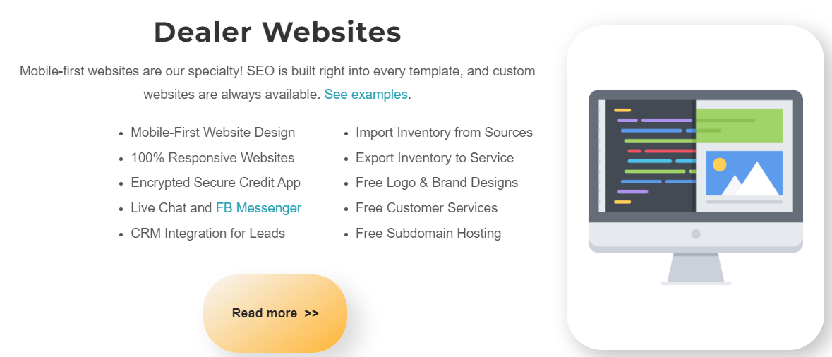 DealerClick is a provider of dealership management systems (DMS) that caters to independent used car dealers throughout the entire United States. We deliver both web-based and desktop software solutions designed for various types of automotive dealerships. Easily list your vehicles across prominent advertising platforms like CarGurus and Craigslist. Our sophisticated inventory management tools ensure a seamless transition from auction to showroom! By digitizing your account management and payment processes, you can significantly save time. All essential resources to effectively operate a Buy Here Pay Here (BHPH) business are conveniently gathered within a user-friendly DMS platform. Notably, we specialize in creating mobile-first websites, with every template featuring built-in SEO capabilities; we can also craft custom websites tailored to your needs. Discover a package that perfectly aligns with your business requirements today. With mobile management, you gain unparalleled flexibility. Our leading-edge applications empower you to oversee every facet of your business directly from your smartphone, allowing for efficient operation on the go. Whether you are looking to enhance your online presence or streamline your dealership operations, DealerClick has you covered.