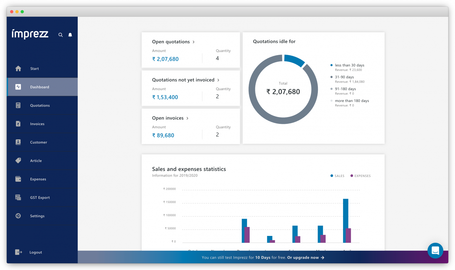 Imprezz provides invoices that meet GST standards, are digital and interactive, and customized to suit unique requirements. As a leading solution for finance and invoicing, Imprezz enables freelancers and small businesses to quickly create invoices, quotes, and reminders in the cloud. The transition from quotes to invoices is simplified to just a few clicks, which helps users receive their payments more quickly. With our legally compliant GST templates, you can effortlessly manage your invoice details while we take care of compliance, giving you confidence and assurance. For any help you might require, feel free to contact us through chat or email—we're here to assist you at no cost! Furthermore, our intuitive platform is crafted to facilitate easy financial management for all users, making it a valuable tool for anyone looking to simplify their invoicing process.