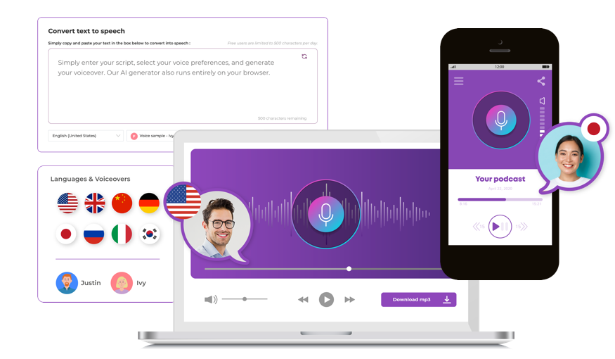 Designs.ai Speechmaker presents a groundbreaking online AI voice generator that quickly converts text into realistic voiceovers in just seconds. It takes your written content and produces voiceovers that feel genuine and captivating. With Speechmaker, users experience a process that is not only more intelligent and rapid but also incredibly easy to navigate. Utilizing state-of-the-art text-to-speech AI technology, it generates high-quality voiceovers efficiently and affordably. The platform employs artificial intelligence to thoroughly analyze your written material, generate an appropriate voiceover, and adjust the tone and pitch for the best delivery possible. Users can connect with audiences worldwide by choosing from a range of languages, such as English, French, Spanish, Mandarin, and Korean, among others. To create a voiceover, all you need to do is enter your script, select your desired voice parameters, and let the generator handle the rest. The entire procedure is browser-based for added convenience; just paste your text into the appropriate field, select a language and voice, and Speechmaker will produce a lifelike voiceover for you. All generated voices are automatically saved, making it simple to preview and export them for any of your projects. This efficient system guarantees that producing high-quality voiceovers is within reach for everyone, irrespective of their technical expertise, effectively democratizing access to professional audio production. Ultimately, Speechmaker streamlines the voiceover creation process, enabling users to focus on their content rather than the complexities of audio production.