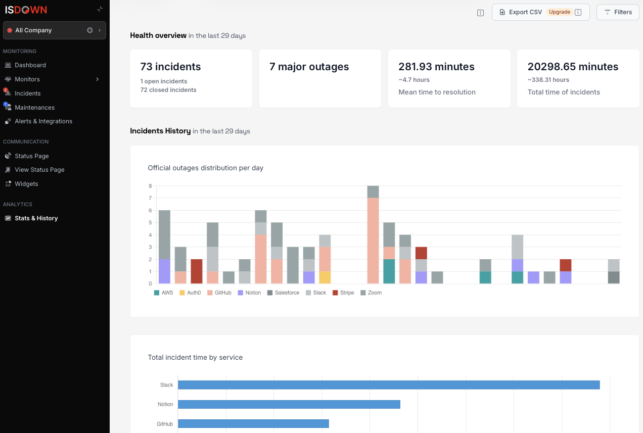 IsDown acts as a unified hub for tracking vendor statuses and consolidating status pages, effectively combining the condition of all crucial business dependencies into a single, user-friendly interface. It provides real-time oversight of more than 6,000 cloud and SaaS services, sending customized outage notifications to various communication platforms such as Slack, Microsoft Teams, PagerDuty, Incident.io, Rootly, Datadog, Email, Discord, and WebHooks. Furthermore, users can access historical uptime data and incident analyses, along with the ability to create personalized status pages that can be shared publicly or kept private. The platform's monitoring features also extend to cover third-party vendors and the APIs, endpoints, and SSL certificates utilized by your organization, thereby guaranteeing a thorough understanding of operational health. This comprehensive strategy ensures that businesses remain informed and equipped to manage any potential service interruptions effectively. By leveraging such insights, organizations can enhance their resilience against unexpected outages and maintain smoother operational continuity.