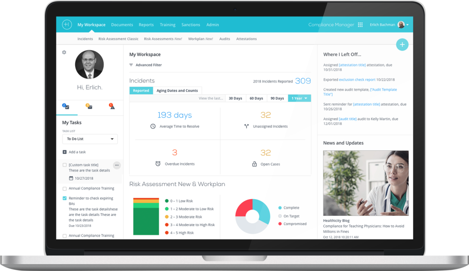 No matter if you're focused on employee training, performing risk evaluations, or probing incidents, you can oversee your whole program through a single, user-friendly application. Healthicity's Compliance Manager encompasses all the essential components required to establish and sustain a robust compliance program.