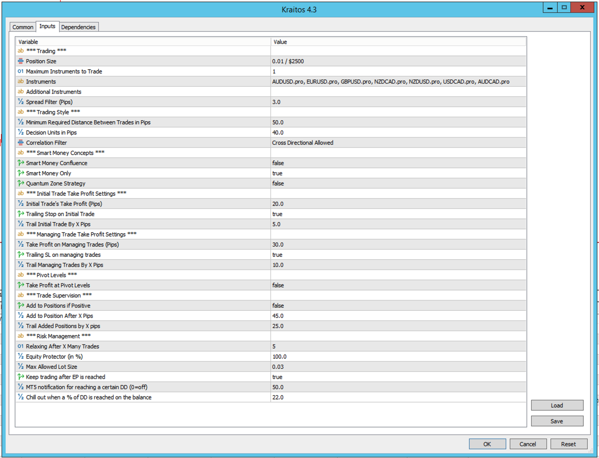 With a broad set of adjustable features, Kraitos Classic gives traders full control over its behavior. Key customization options include: