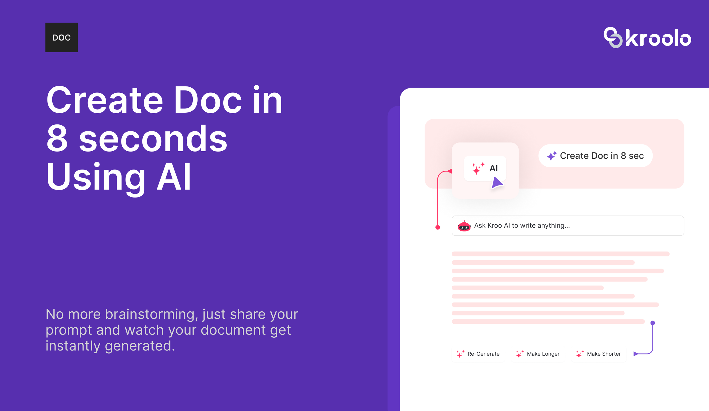 Kroolo also boasts advanced AI features. With Kroo AI, your very own AI assistant, you can set up a task in just 5 seconds, initiate a project in 6 seconds, or compose a document within 8 seconds. Furthermore, Kroolo enhances your ability to connect and engage with remote teams, ensuring smooth communication and collaboration wherever you are. Experience the future of productivity with Kroolo and transform the way you work.