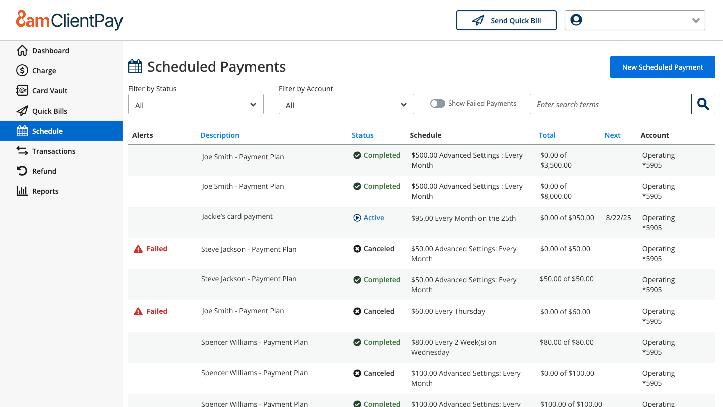 8am ClientPay allows you to securely process credit card and eCheck payments from anywhere, be it your office, online, or directly at a job site. By broadening your payment options and streamlining the payment process for clients, you can improve the reliability of your cash flow. Our innovative payment solutions make it easy and secure to accept credit, debit, and eCheck payments. With advanced data encryption and top-notch cybersecurity protocols, you can have confidence that both your firm's information and your clients' sensitive details are safeguarded. Furthermore, we offer transparent and competitive pricing that excludes long-term contracts, setup fees, or cancellation penalties. ClientPay enhances your financial management with valuable insights through its reporting and reconciliation tools, which enable you to generate customizable reports and dashboards that showcase real-time payment information and key business metrics. This holistic strategy empowers you to manage your finances more effectively, facilitating informed decision-making that supports your business's growth and sustainability. In this way, ClientPay not only simplifies transactions but also contributes to the overall success of your enterprise.