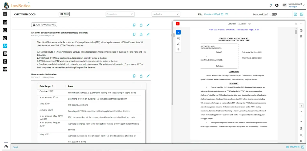 LawBotica is transforming the legal industry by streamlining various tasks such as summarizing depositions, constructing case timelines, and conducting comprehensive due diligence and document reviews, which significantly reduces the time typically required for these processes from months to just minutes. Equip your legal team with our AI-enhanced Document Review module, meticulously crafted with a specialized Legal Language Model tailored for the legal profession. By simply uploading your legal documents, you gain access to thorough analyses, vital insights, and practical recommendations that expedite your review process and enhance your decision-making capabilities. Our Document Summarization module, also powered by a custom Legal Language Model, offers a quick and effective way to grasp complex legal documents. Whether you require summaries of court opinions, testimonies, or depositions, our tool provides clear and concise summaries that save you time while boosting understanding. Furthermore, our Document Chat module allows users to fully harness their legal documents, creating a dynamic and engaging experience that encourages deeper interaction with the content. This innovative approach not only enhances productivity but also empowers legal professionals to focus on higher-level strategic tasks.