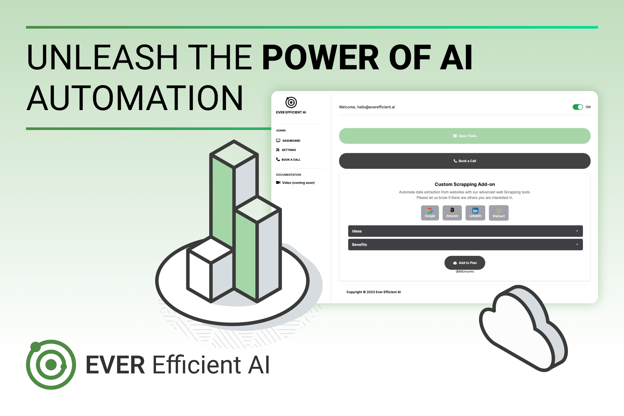 Revolutionize your business operations with our state-of-the-art AI solutions that empower you to leverage historical data for innovation and enhanced efficiency. By tapping into the wealth of your past data, you can foster growth and transform your business processes, addressing one task at a time. At Ever Efficient AI, we recognize the significance of your historical data and the vast possibilities it holds. Through innovative analysis of this data, we reveal opportunities for improving process efficiency, making informed decisions, reducing waste, and driving overall growth. Our task automation services are specifically designed to alleviate the burdens of your daily operations. With our AI systems managing everything from scheduling to data handling, you and your team can dedicate your efforts to what truly counts—your core business objectives. The future of your business is bright with Ever Efficient AI, where we not only streamline your operations but also make room for unprecedented growth and creativity.