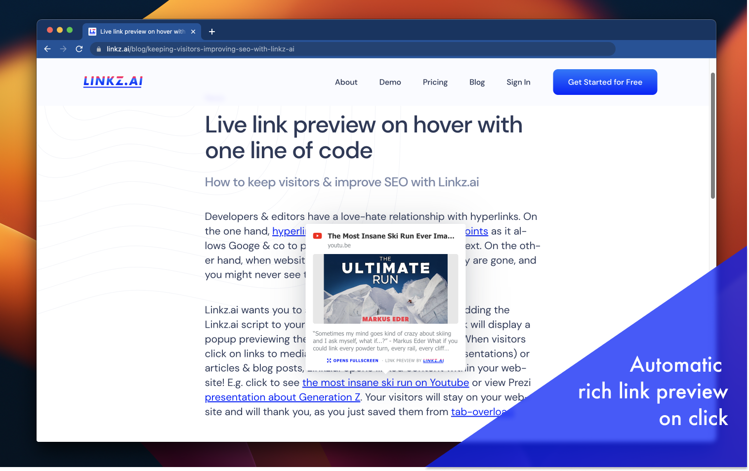 Linkz.ai seamlessly creates hyperlink previews directly on your website, enhancing user satisfaction and engagement to ensure visitors stay longer.