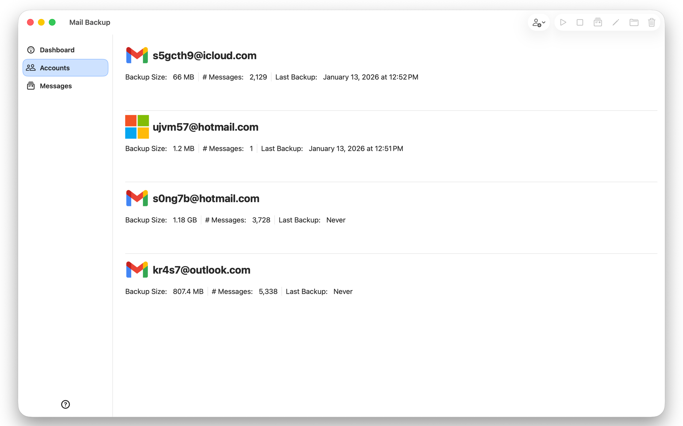 Designed specifically for macOS, this application protects your email accounts by storing them on your personal device. Each email undergoes careful verification using checksum technology, which guarantees that the storage is accurate and distinct, thus preventing issues like duplication and data loss.