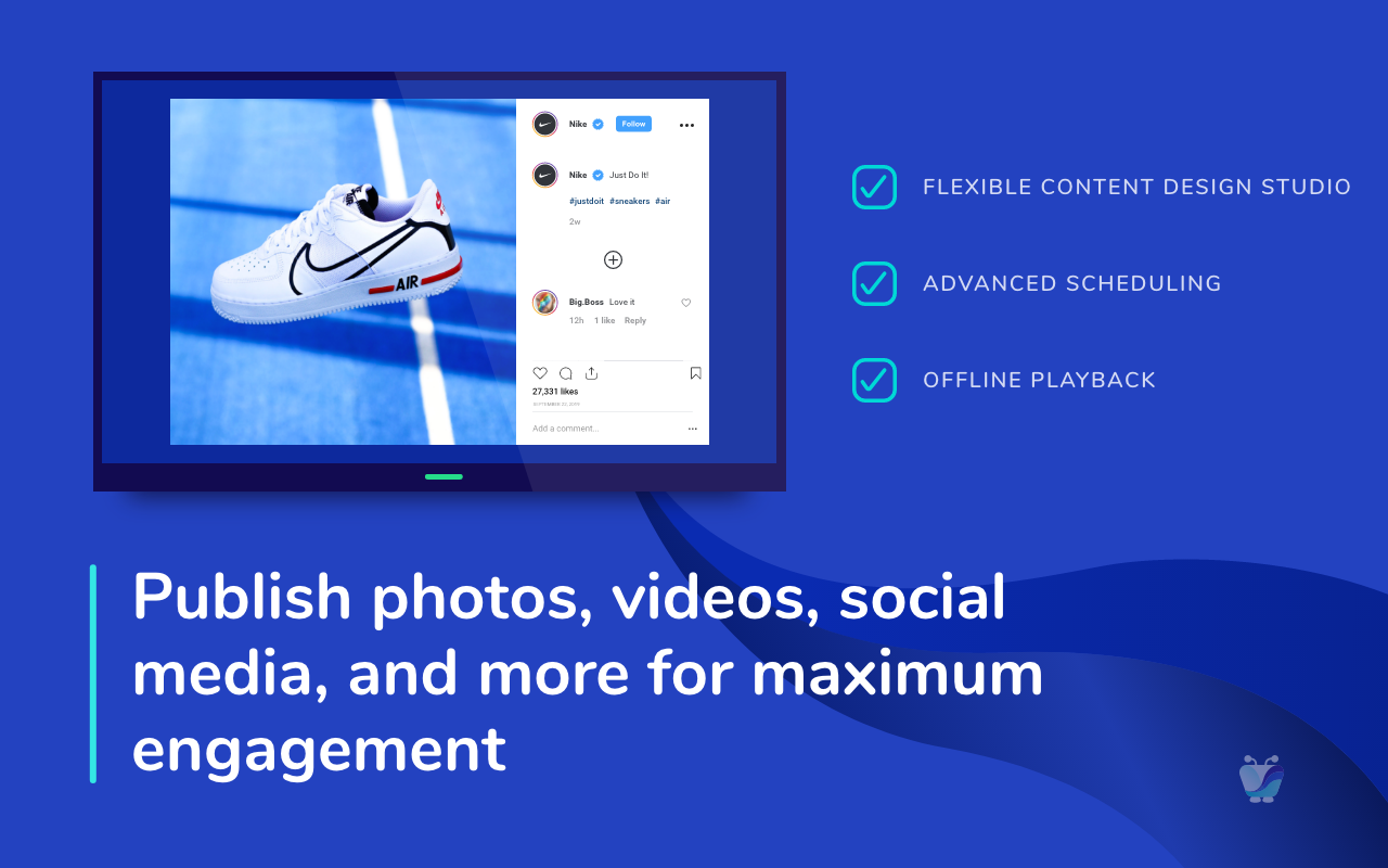 Enhance your business with cutting-edge digital signage solutions. Our platform stands out as the premier digital signage option available, allowing you to effortlessly create, manage, and showcase dynamic content across a single screen or thousands at once. Tailored digital solutions cater to every type of business, featuring innovative engagement methods, a variety of digital screen configurations, immersive applications, and location-specific solutions, all supported by a cloud-based content management system. With Instant Digital Signage, small businesses can independently establish and operate their own signage networks using our user-friendly media player. Our offerings are designed with flexibility in mind, enabling seamless content design, creation, and management, while ensuring you can easily organize and schedule material across multiple locations. This approach fosters engagement, education, and interaction with your target audience, delivering a more intelligent and user-friendly plug-and-play digital signage experience. For enterprises, we provide comprehensive services and products that ensure a complete solution for all aspects of digital signage, video, and other media applications, enhancing your overall communication strategy.