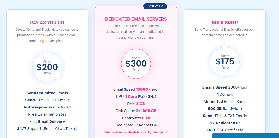 GreatmailDependable cloud-based email hosting comes equipped with essential features like spam protection, antivirus safeguards, generous storage capacity, and accessible webmail options. It offers smooth integration not only with Outlook but also with a variety of other POP3 and IMAP email clients. For users who require substantial sending capabilities, a strong SMTP service is available, catering to responsible senders. In addition, an outbound relay service is provided, specifically designed for transactional emails, marketing initiatives, newsletters, and other varied applications. The infrastructure is built to handle high-volume senders efficiently, supporting dedicated email servers, clustering, and load balancing across multiple IPs. With a consistent monthly subscription, users can enjoy unlimited sending capabilities along with reputation monitoring features. Greatmail distinguishes itself as an email service provider (ESP) that prioritizes business-class email hosting, SMTP hosting, and dedicated email servers. Moreover, we develop tailored solutions for ISPs, software developers, and cloud architects, which include dedicated IP servers and load-balanced configurations across several servers to satisfy particular processing requirements. This dedication to flexibility guarantees that every client receives exceptional service that is customized to meet their specific needs and expectations. Ultimately, our goal is to empower businesses with reliable email solutions that enhance their communication efforts.