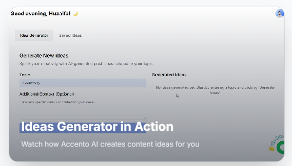 Transform your LinkedIn strategy by utilizing AI-based content creation tools. Create engaging posts with ease, organize your content calendar, and widen your professional network effortlessly. Accento AI stands out as an advanced platform designed to improve LinkedIn engagements by automating the content creation process, managing post timings, and delivering updates on relevant industry news. It empowers users to generate innovative and relevant content ideas that connect with their audience and align with their goals, greatly boosting engagement through smart recommendations. With Accento AI, generating appealing LinkedIn posts can be done in just seconds, and its customization options ensure that your content accurately represents your unique brand. The platform also optimizes the scheduling and posting of LinkedIn content during the most effective times for visibility. Additionally, it offers daily insights into the latest industry trends and discussions, keeping users informed and ready to engage with their network effectively. By incorporating this state-of-the-art tool, you can significantly enhance your LinkedIn visibility and foster valuable professional relationships. Ultimately, embracing such technology can lead to a more impactful and influential presence on the platform.