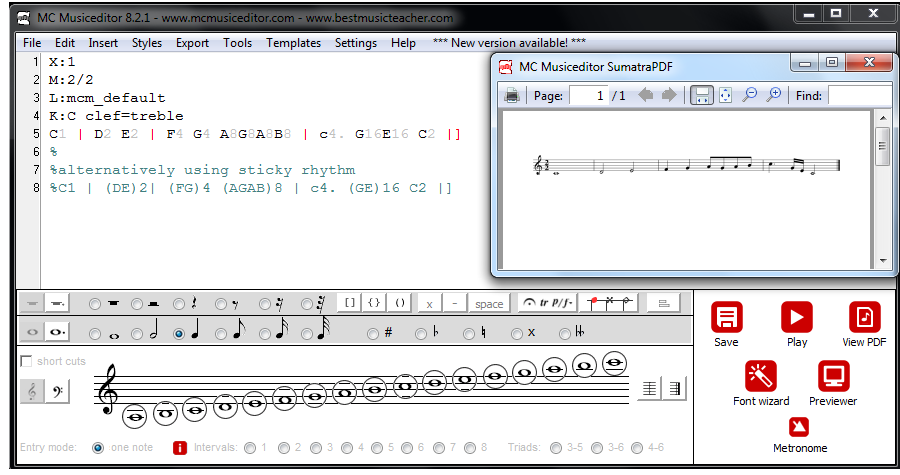 MC Musiceditor is a free, open-source music notation application released under the GPLv2 or later license. It is available in two distinct versions: the comprehensive MCMusiceditor and the streamlined MCMusiceditor-Lite, which is tailored for Windows systems (from XP onward) and can also run on Linux using Wine. Created by Reinier Maliepaard, a psychologist, software engineer, musician, and educator at the ArtEZ Conservatorium in the Netherlands, this software seeks to ease the process of creating musical scores for its users. The result is an intuitive editor that generates professional-quality scores with minimal prior knowledge required, provided the user has some fundamental understanding of music. Additionally, MC Musiceditor is recognized as an effective tool for composing, improving, listening to, and printing high-quality musical scores. It notably supports the sharing of musical notation data with other popular WYSIWYG music notation applications such as MuseScore, Finale, and Sibelius, which are frequently used by my students. This ability to interact with various software enhances its appeal, making MC Musiceditor an invaluable asset for both beginners and seasoned musicians seeking to refine their craft. Overall, its combination of user-friendliness and advanced features ensures it remains relevant in the ever-evolving landscape of music composition tools.