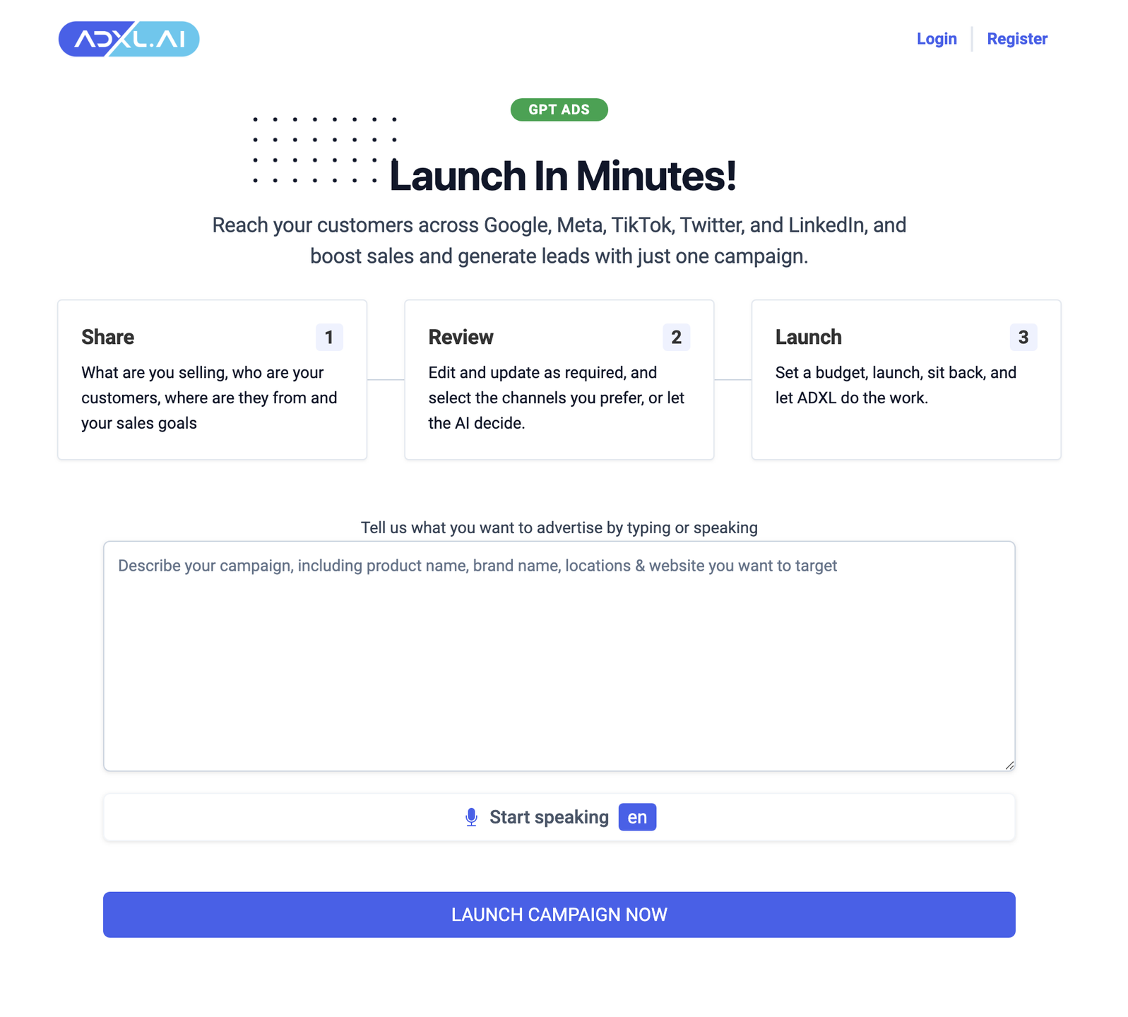 ADXL serves as a dynamic digital marketing solution that streamlines campaign management across popular platforms like Google, Facebook, and Instagram. By leveraging state-of-the-art AI algorithms, it delivers sophisticated strategies designed to enhance sales and lead generation while effectively reducing both time and expenses. This platform enables businesses to reach their target audience at the most opportune moments, thus simplifying the marketing process. With features like centralized instant leads, AI-enhanced copywriting, automated targeting across all channels, and seamless retargeting, ADXL ensures an efficient marketing experience. It also provides several pre-optimized campaign formats aimed at increasing brand visibility, driving online sales, and generating valuable leads. Furthermore, ADXL simplifies website tracking management, eliminating the need for technical expertise, which allows users to effortlessly monitor and evaluate the effectiveness of their campaigns. Ultimately, this comprehensive approach positions ADXL as an essential tool for modern businesses looking to thrive in the digital landscape.