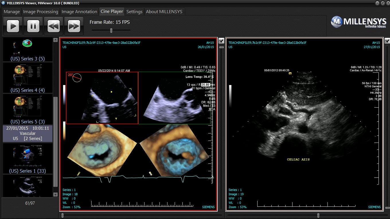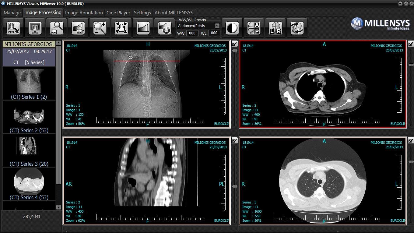 MILLENSYS DicomViewer, known as "MiViewer," is an intuitive DICOM viewer software that offers ease of use for its users. It is capable of displaying multi-modality images and cine-loops seamlessly within the same platform. Users can load DICOM studies from various storage media, making it highly versatile. The software comes equipped with essential tools for case navigation and image viewing, streamlining the workflow for everyday tasks.