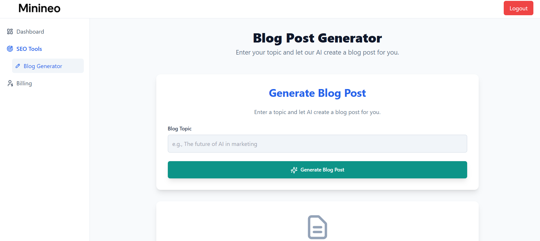 Currently operating in its beta phase, Minineo's blog generation feature is available, while additional capabilities such as social media integration, webpage content creation, and workflow automation are set to be introduced in the future. Designed to streamline the content creation process, this platform saves precious time and empowers businesses, agencies, and content creators to scale their marketing efforts more effortlessly.
