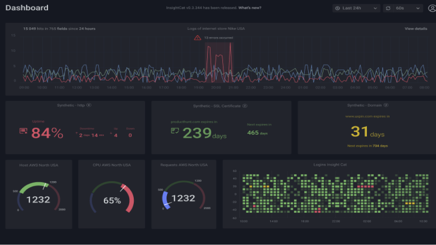 InsightCat is a comprehensive platform designed for effective hardware and software monitoring, enabling users to search, analyze, aggregate, and summarize system metrics seamlessly from a single interface. It was crafted with simplicity in mind, catering to the primary needs of DevOps and SecOps professionals, such as system administrators and IT specialists, focusing on issues like infrastructure monitoring and security log management. This solution empowers users to conduct thorough infrastructure monitoring and swiftly identify and rectify anomalies to prevent future occurrences. Additionally, it offers synthetic monitoring, ensuring that web services are continuously monitored around the clock, allowing for early detection of critical downtimes. The log management feature is robust, while a smart alerting and escalation system keeps your team updated on any unusual activity, spikes, or errors, fostering a proactive approach to system health. Overall, InsightCat provides a unified solution to safeguard and optimize your infrastructure efficiently.