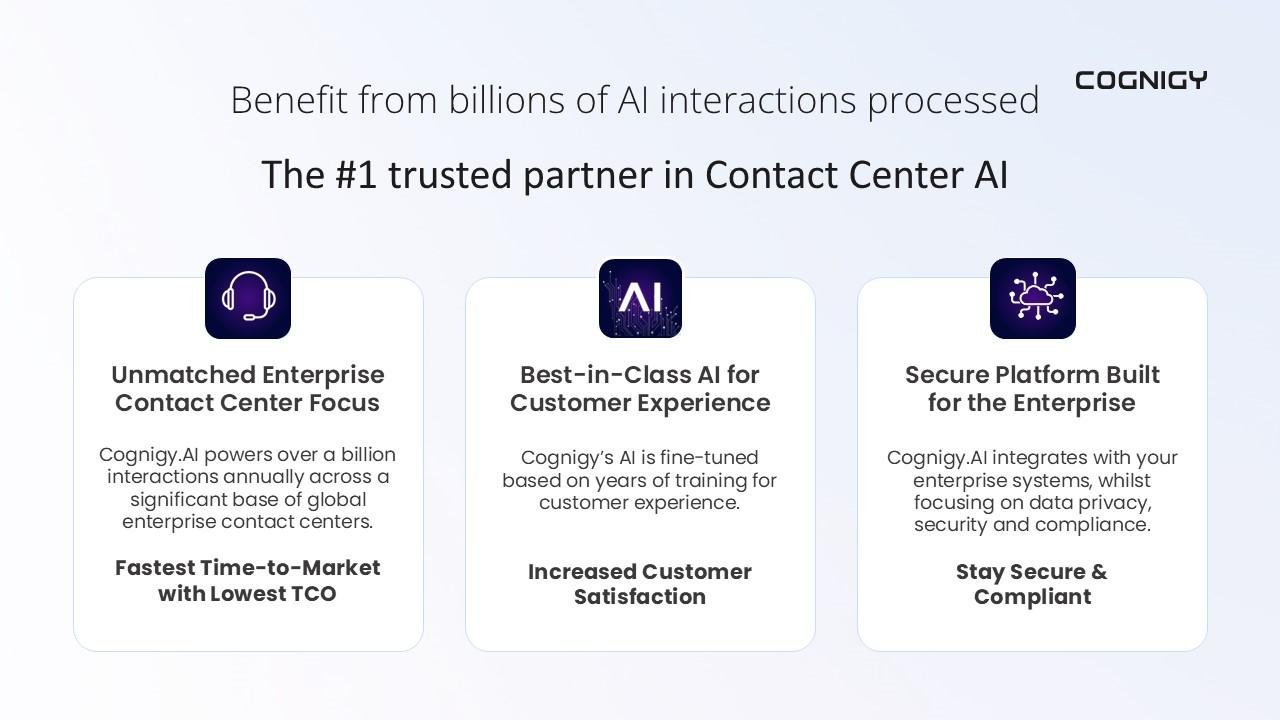 Cognigy.AI is a sophisticated conversational AI platform tailored for enterprises, aimed at automating customer interactions across multiple channels, such as voice and chat. By utilizing cutting-edge natural language understanding (NLU) and large language models (LLMs), it allows companies to develop smart AI agents that engage in personalized, human-like dialogues. The platform's strong integration features enable it to connect effortlessly with existing contact center and CRM systems, thereby enhancing the orchestration of customer experiences. Additionally, Cognigy.AI introduces Agentic AI, which features autonomous, goal-driven agents capable of independent thought, adaptation, and collaboration with both AI and human agents, effectively managing intricate queries with agility and accuracy. This all-encompassing solution not only facilitates the streamlining of customer service operations but also boosts engagement levels and increases efficiency in addressing customer inquiries, ultimately transforming the way businesses interact with their clients. With its innovative tools and capabilities, Cognigy.AI positions organizations to thrive in the competitive landscape of customer service.