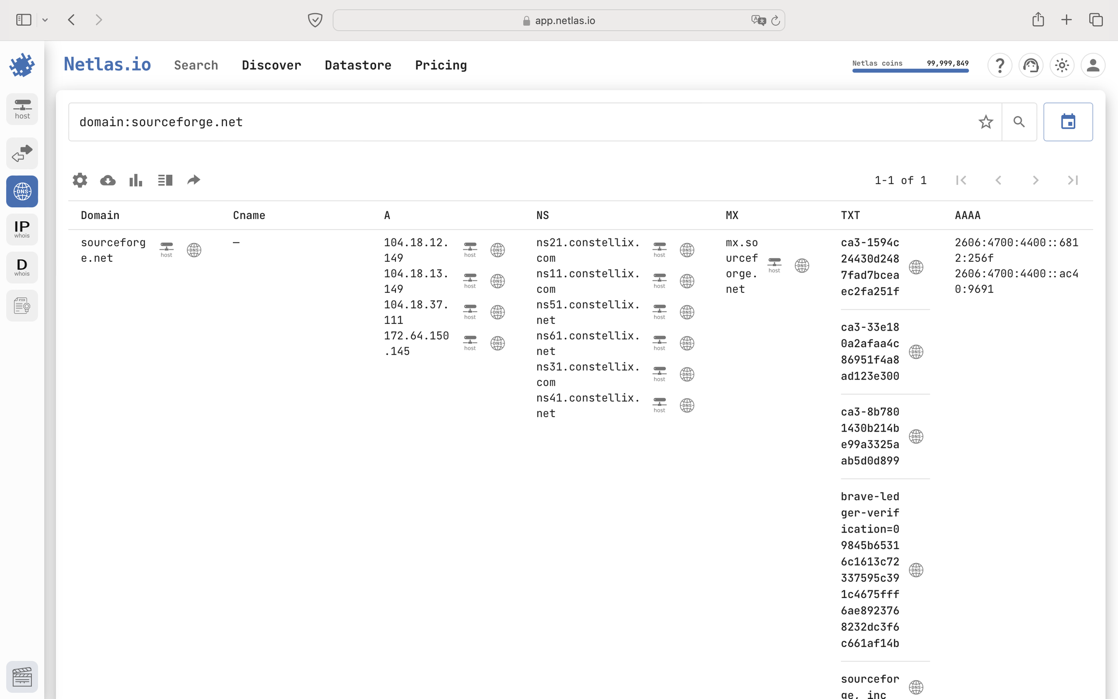 Netlas.io serves as a search engine that functions as a network scanner for the Internet. It conducts extensive scans of DNS records for billions of domain names, along with analyzing hundreds of millions of HTTP responses and SSL certificates. Users can access this wealth of information through a variety of tools.