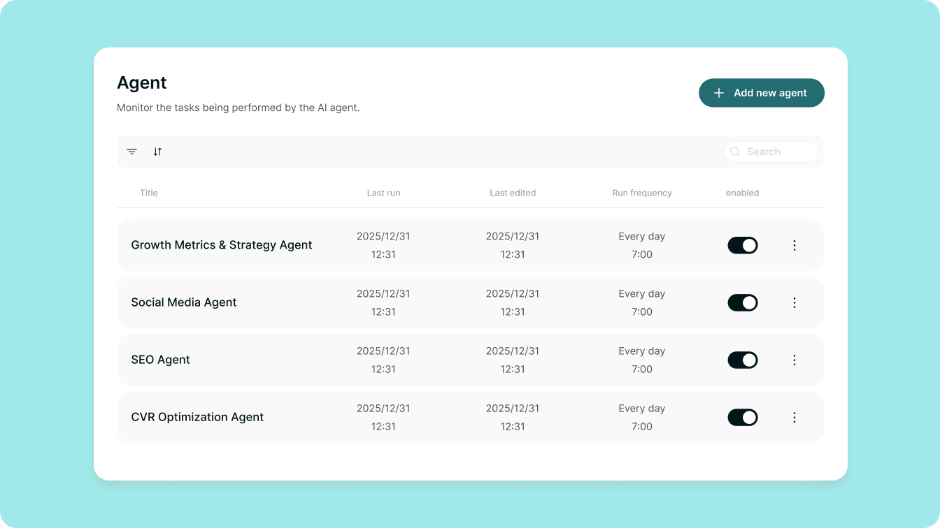 This remarkable collection includes agents specializing in areas such as Growth Strategy, Competitor Analysis, Social Listening, SEO, and Social Media, among others. You simply need to define your objectives, and the AI team will take over the entire marketing process, managing everything from preliminary research and analysis to detailed planning and execution.