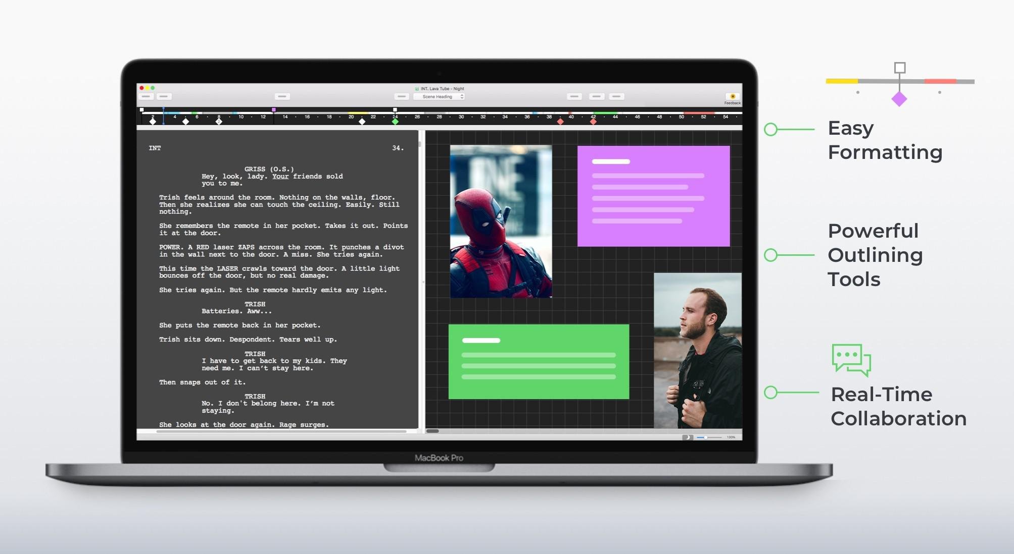 Final Draft remains the top choice for 95% of professionals in the film and television industry, solidifying its status as the essential software for screenwriters and filmmakers worldwide. With the release of Final Draft® 11, scripts are formatted and paginated automatically to align with industry standards, enabling writers to focus on what truly matters: crafting compelling narratives. Collaboration is made effortless with real-time editing capabilities, facilitating teamwork among writers regardless of their location, whether nearby or on another continent. The innovative Speech to Script feature amplifies the Mac’s Dictation functionality, allowing for screenplay writing without the reliance on a keyboard. Moreover, SmartType significantly reduces typing efforts by auto-completing frequently used character names and settings, optimizing the writing workflow. Users can enhance their storytelling by incorporating images into title pages, within the script, or on the Beat Board, thus enriching the visual aspect of their narratives. The Alternate Dialogue feature is indispensable for managing various line options, ensuring writers have an abundance of creative possibilities readily available. Additionally, the night mode fosters an undistracted work atmosphere, promoting sustained concentration and productivity. Overall, this all-encompassing tool equips writers with everything they need to transform their imaginative ideas into reality, solidifying its indispensable role in the creative process.