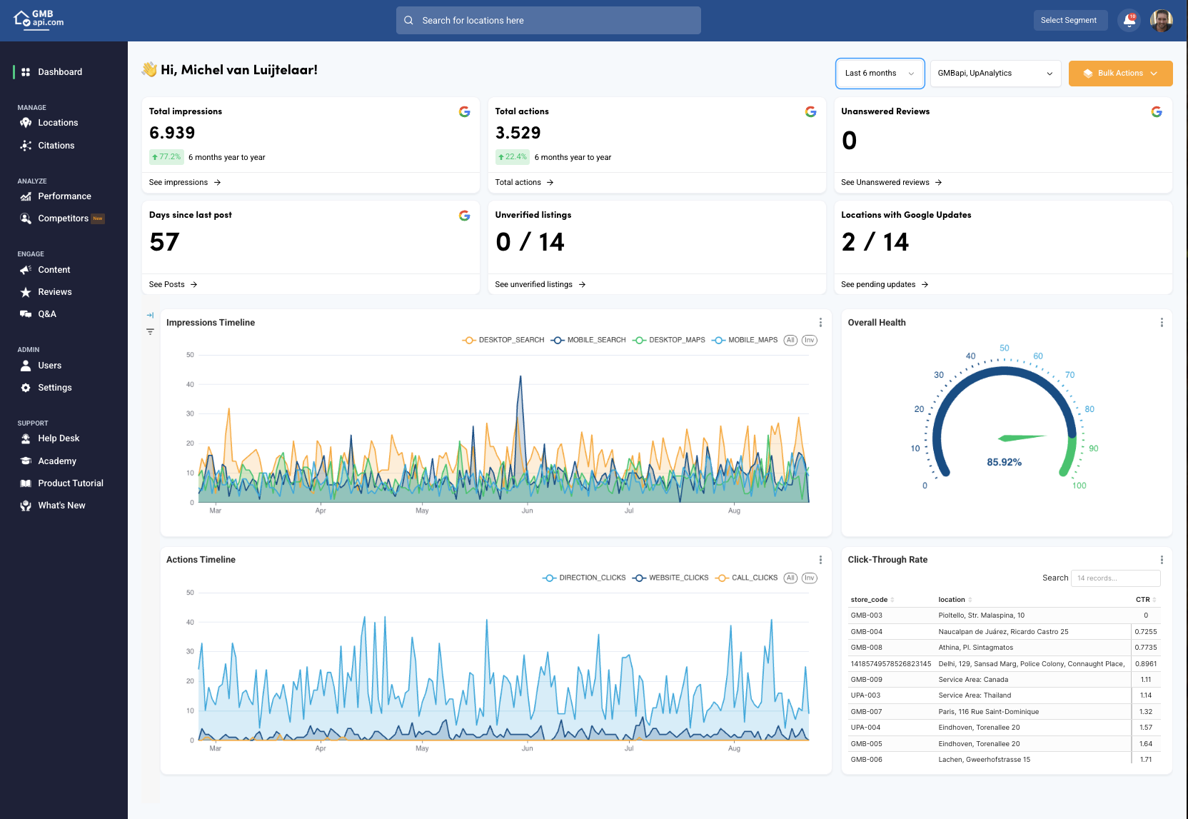 Our platform is favored by SEO/SEA agencies, freelancers catering to small and medium enterprises, and direct clients, as it streamlines local brand management effortlessly. Users can conveniently share content, products, services, and (bulk) images while obtaining a clear view of Local Search priorities.