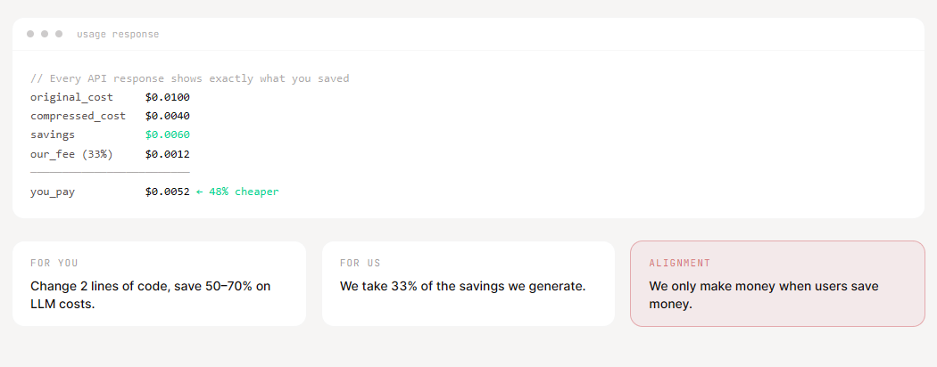 OpenCompress is a groundbreaking open-source AI optimization layer designed to cut costs, lower latency, and reduce token usage during engagements with large language models by effectively compressing both input prompts and the resulting outputs while preserving their quality. Serving as a straightforward middleware solution, it connects with any LLM provider, allowing developers to work with various models like GPT, Claude, and Gemini, all while ensuring that each request is automatically optimized in the background without added effort. This technology focuses on minimizing token waste through a comprehensive approach that employs techniques such as code minification, dictionary aliasing, and structured compression of recurring elements, which not only maximizes the utilization of context windows but also reduces computational requirements. Its model-agnostic characteristic facilitates smooth integration with any provider that supports an OpenAI-compatible API, enabling developers to effortlessly add it to their current workflows and systems without extensive modifications. By streamlining the interaction with AI, OpenCompress not only enhances efficiency but also significantly boosts the performance of AI applications, making it an indispensable resource for developers aiming to improve their project outcomes. The advancements represented by OpenCompress herald a new era in AI optimization, promising improved interactions and significant resource savings.