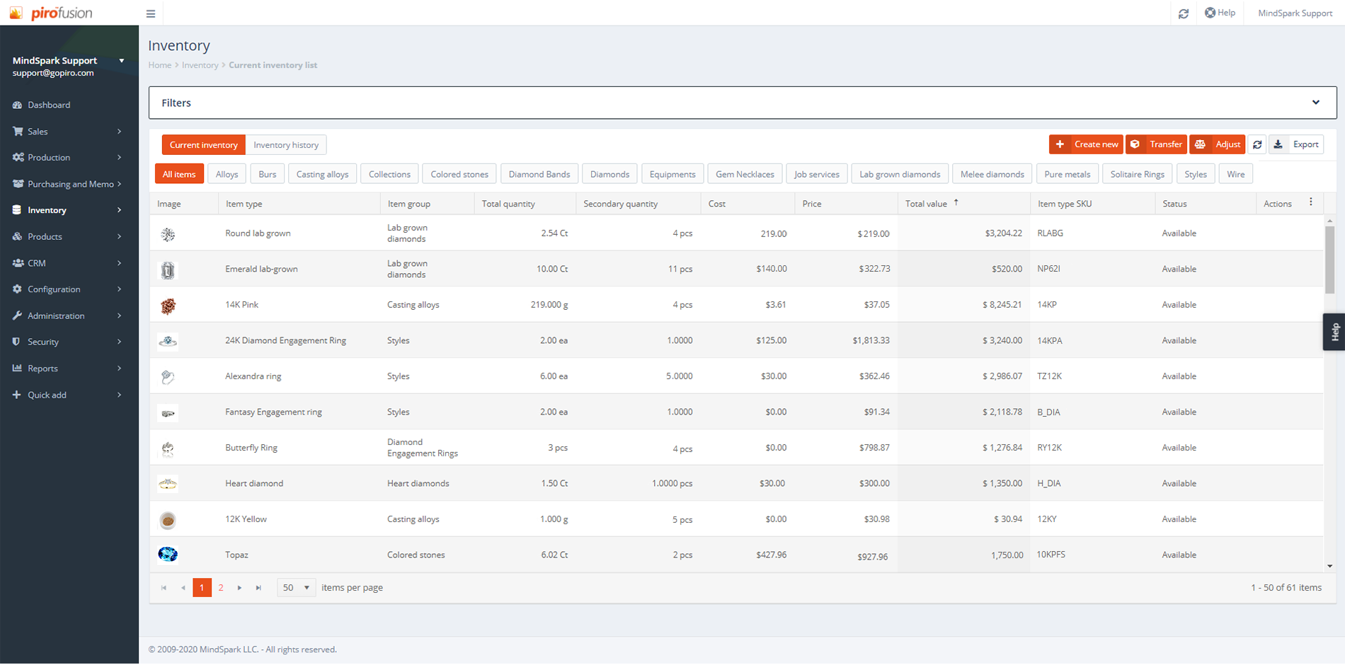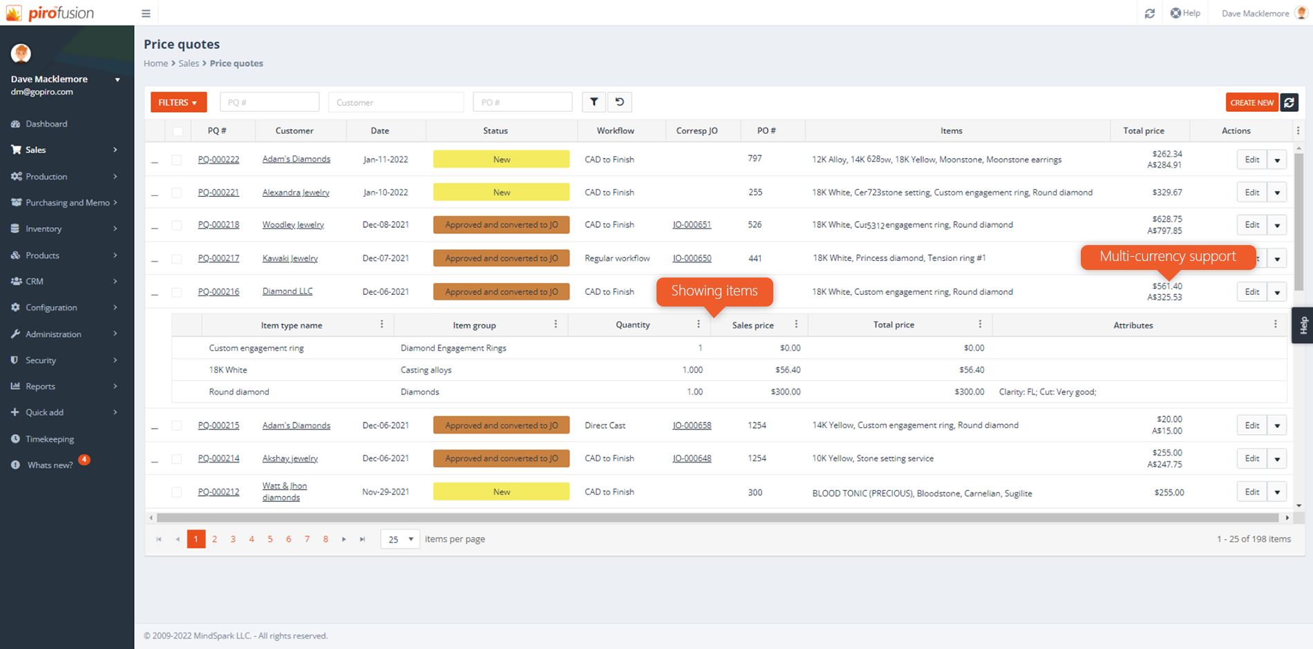 PIRO Fusion offers a cost-effective and adaptable cloud-based solution for managing jewelry businesses, encompassing essential modules like inventory management, production tracking, customer relationship management, sales and invoicing, as well as comprehensive reporting features. Its user-friendly design and responsive interface ensure compatibility across a wide range of modern devices, including tablets, smartphones, and both Mac and PC computers. This versatility allows jewelry businesses to efficiently manage their operations from virtually anywhere.