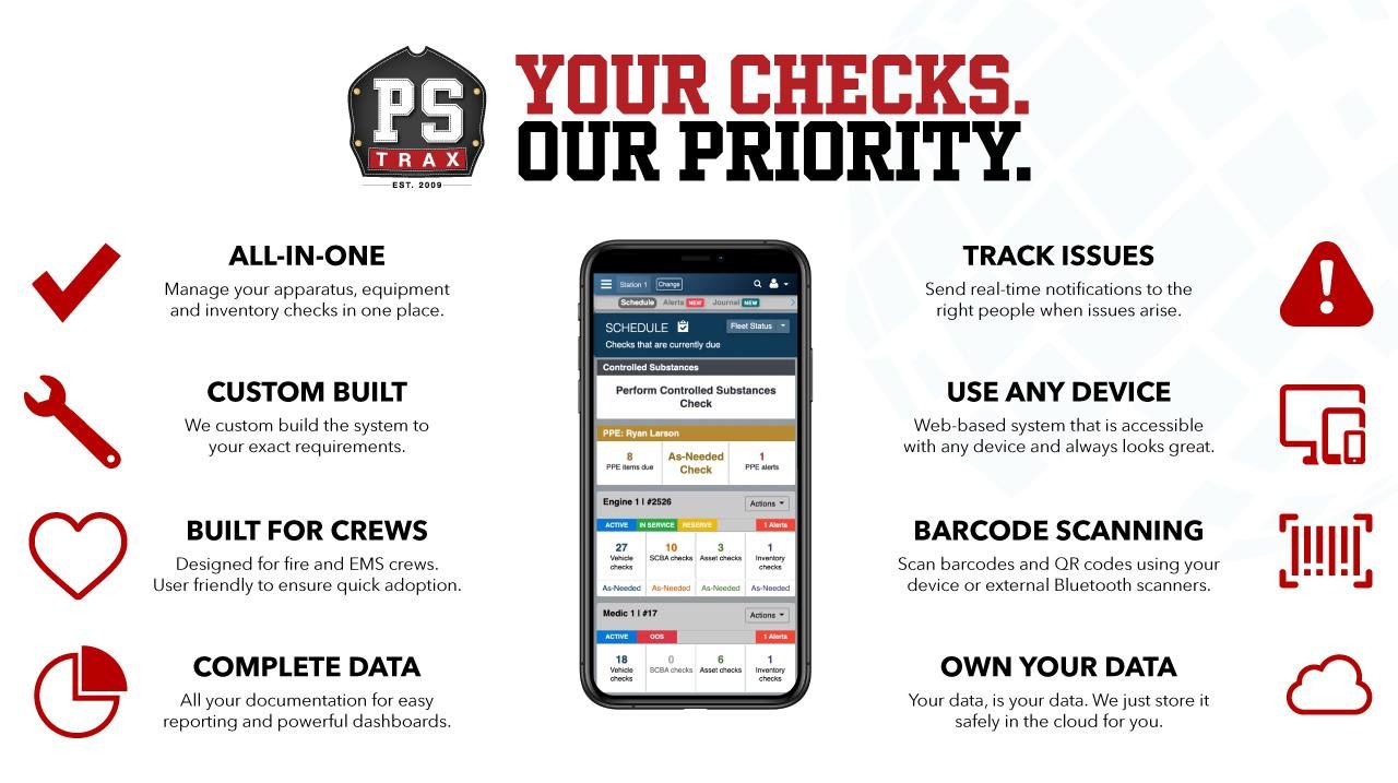 We tailor cloud-based solutions specifically for Fire and EMS agencies to enhance their efficiency and compliance while reducing redundancies and potential risks. Managing countless pages of logs, maintenance requests, checklists, and various documents across multiple stations and team members can be overwhelming for your department. PSTrax brings all these checks together into a unified platform that digitally tracks, documents, and schedules every necessary task. Our system is customized to meet your specific needs, accommodating every apparatus, piece of equipment, inventory item, and checklist. This ensures that crews are always aware of what needs to be inspected and when. With its user-friendly interface, PSTrax is quickly embraced by teams, providing a visually appealing experience on any device and being readily accessible from anywhere with an internet connection. We believe your crews will find it not only useful but also enjoyable to use. Additionally, the streamlined processes can significantly improve overall operational efficiency.