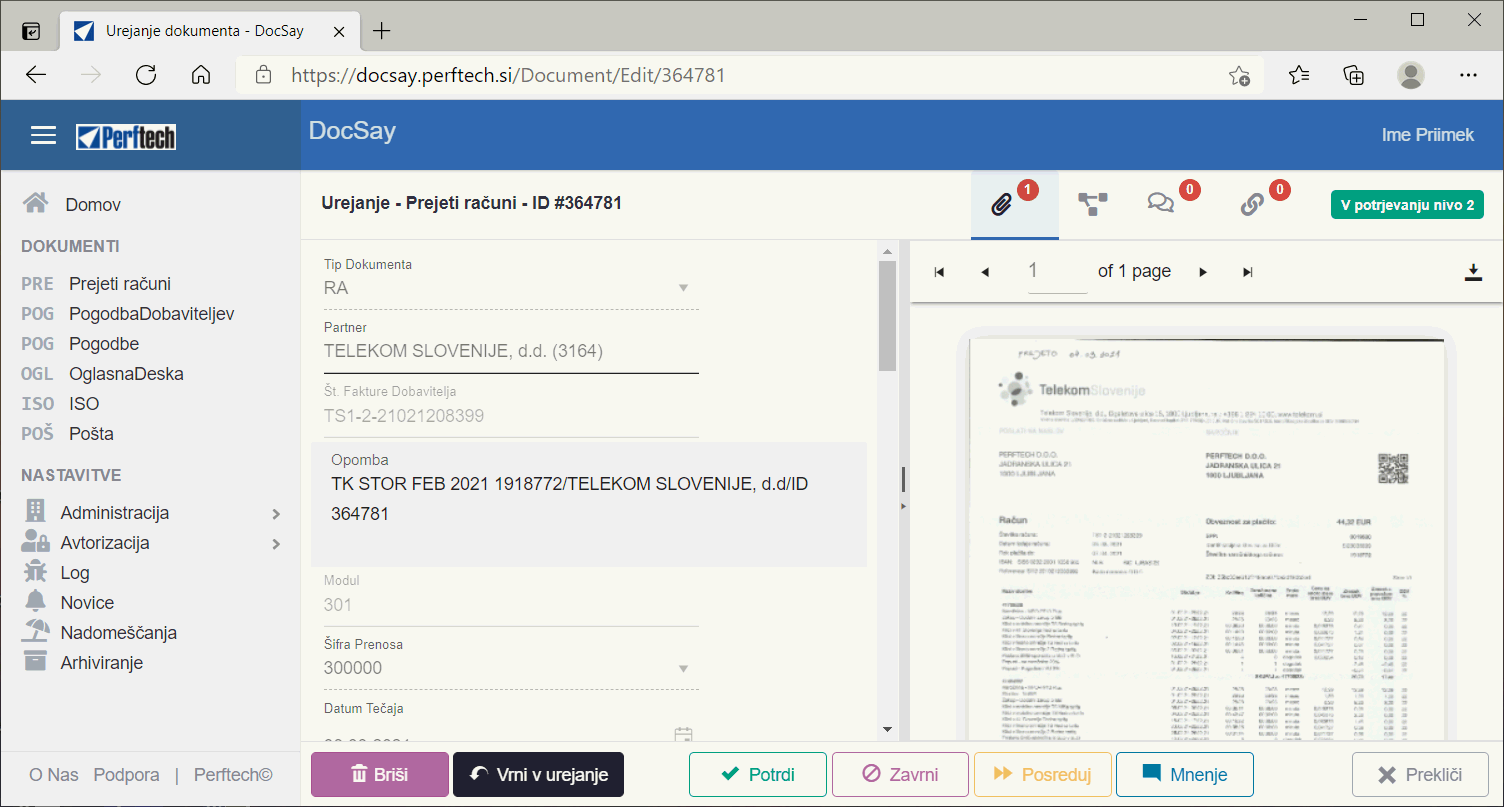 With Perftech.DocSay, you can oversee a variety of documentation needs such as managing ISO-related documents, invoices, project management files, and quality assurance records. Additionally, it provides a secure space for storing original documents like contracts and quotations.