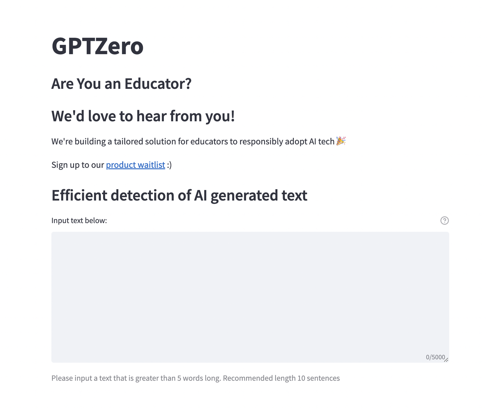 GPTZero analyzes the underlying technologies of ChatGPT to detect AI involvement, employing various metrics like perplexity to pinpoint contributions made by artificial intelligence. Moreover, GPTZero is committed to providing a free and accessible version of its original tool for everyone to use. You can check out the demo that has gained significant popularity across the internet. Additionally, we are working on a tailored solution designed to assist educators in the responsible integration of AI technologies in their teaching environments. This effort aims to improve the educational experience while promoting ethical AI practices within the classroom, ensuring that technology complements traditional learning effectively.